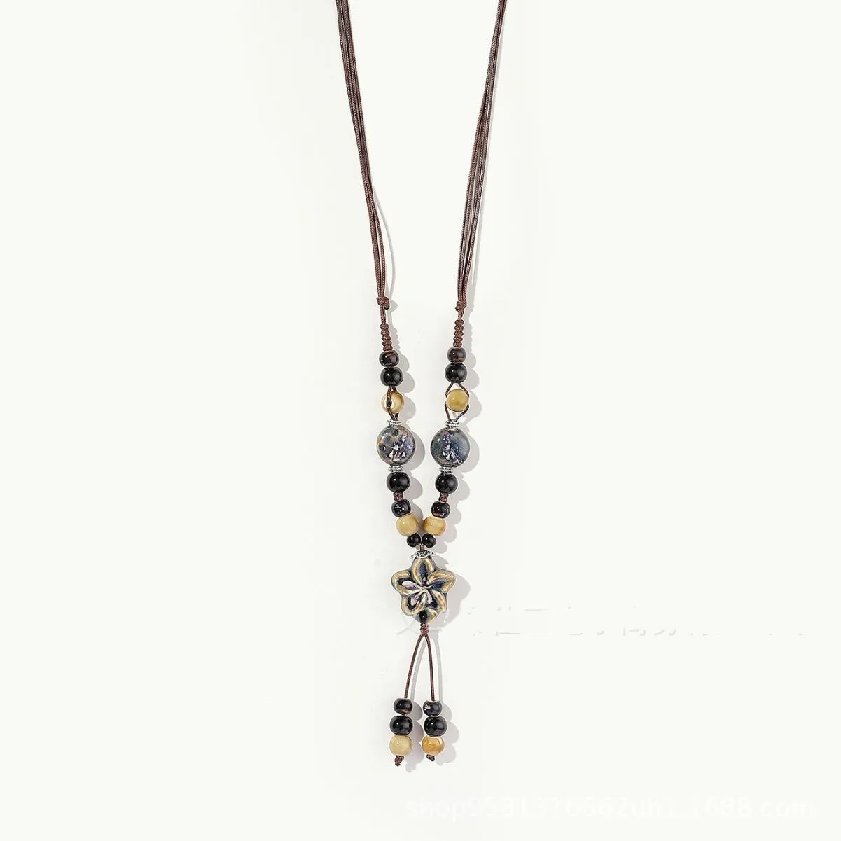 Vintage Sweater Chain Women's Long Flower Ceramic Necklace