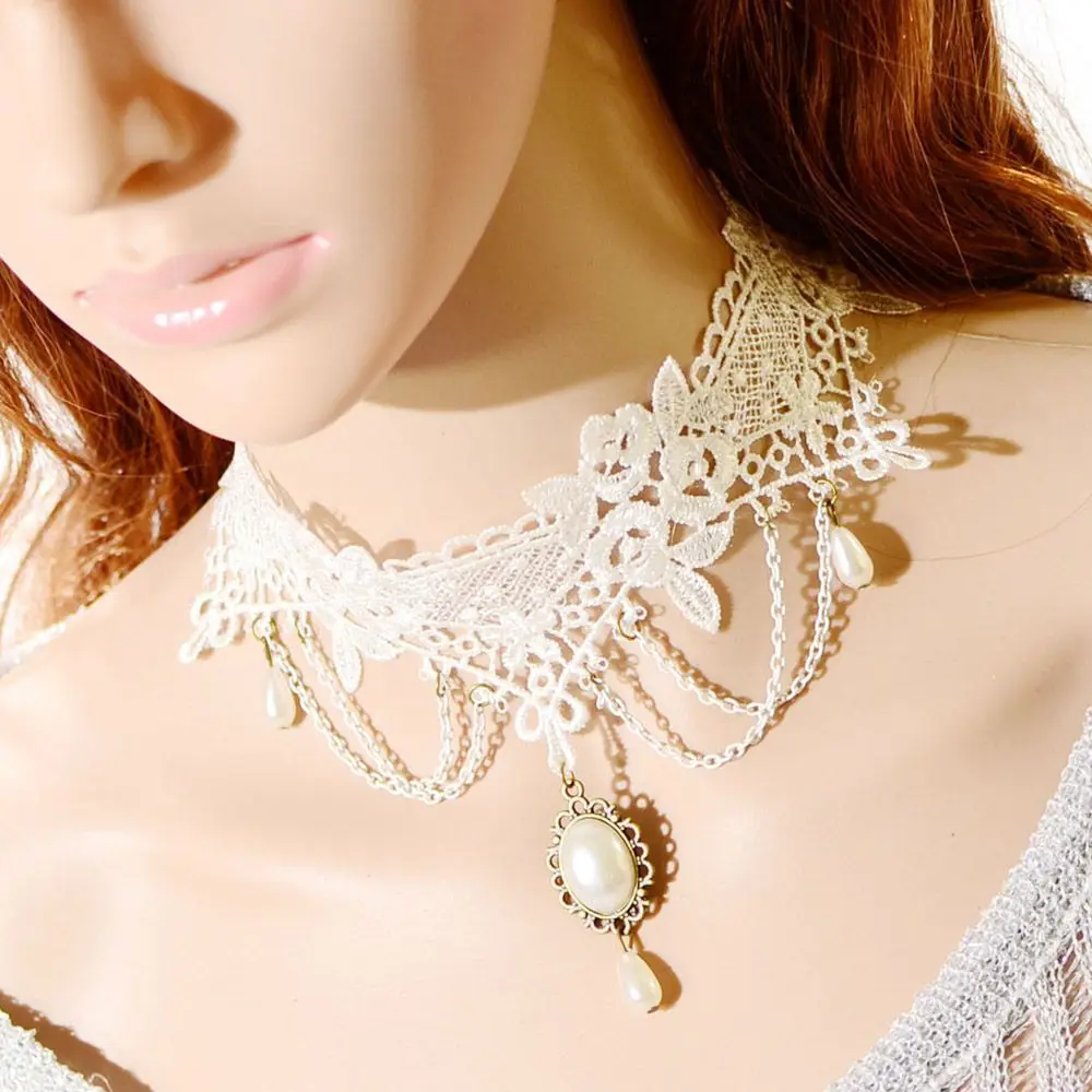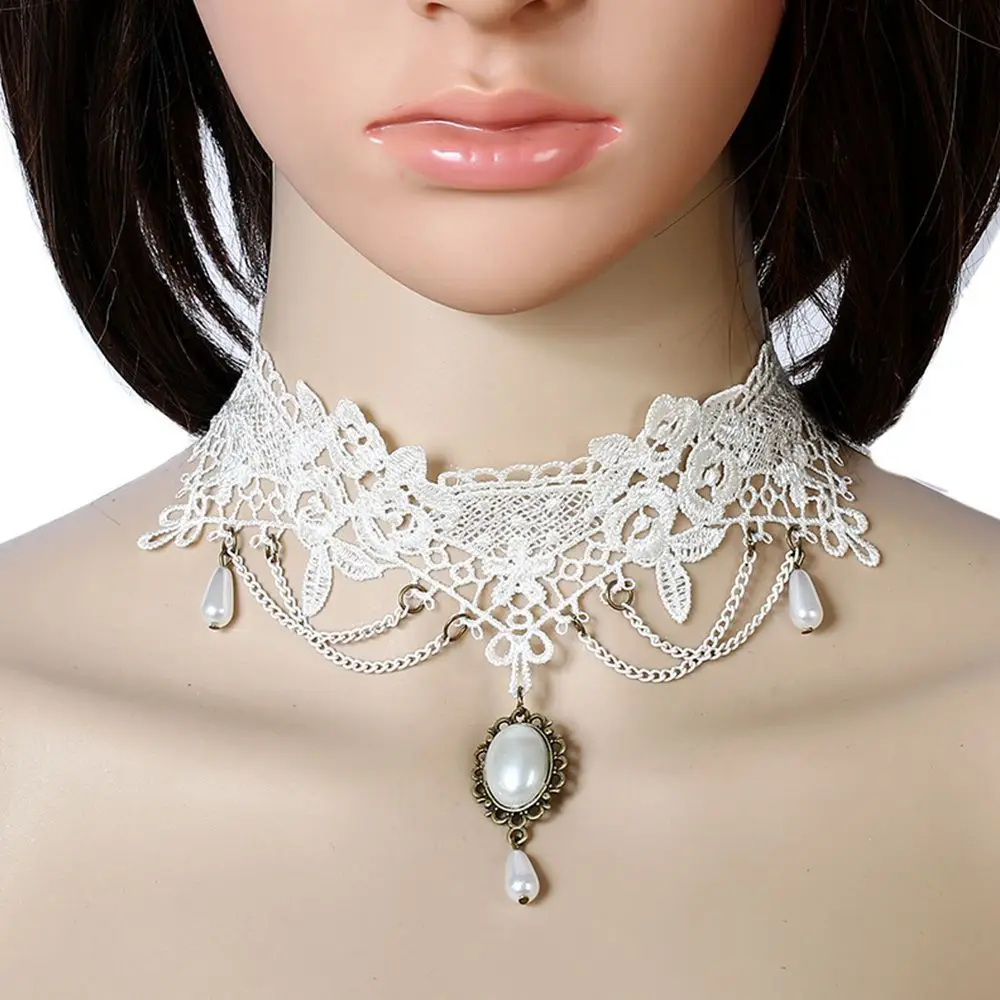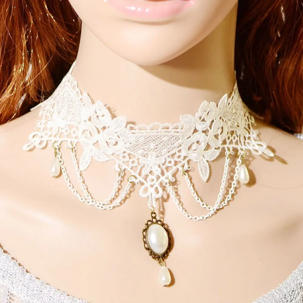 Crafted with intricate white lace, this necklace exudes vintage elegance and sophistication.