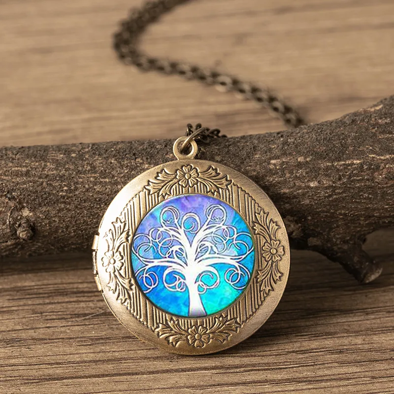 Vintage Tree of Life Antique Gold Photo Frame Locket Necklace