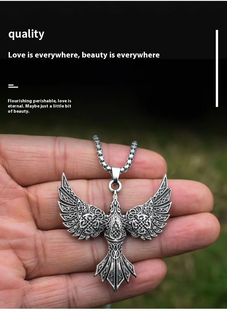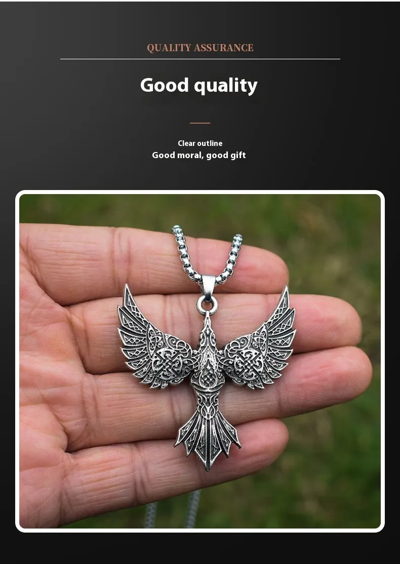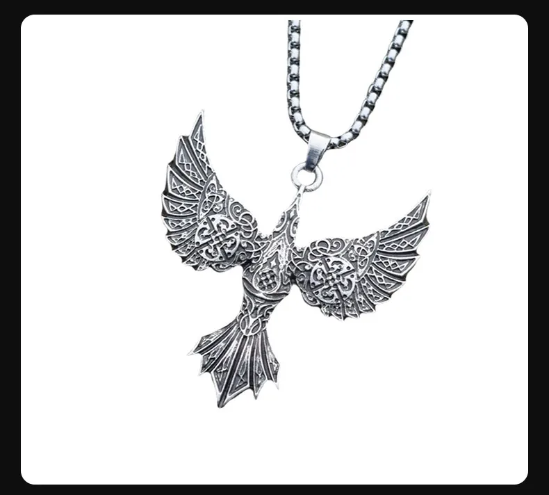 Vintage Viking Crow Pendant Necklace