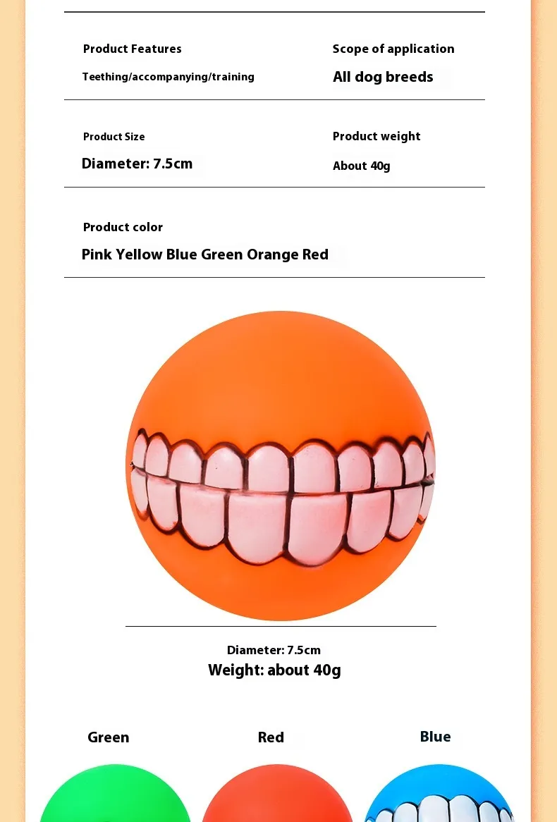 The Vocalization Bite-Resistant Molar Pet Toy Ball is designed to provide your pet with hours of entertainment, while also supporting dental health. Made from durable, bite-resistant materials, this toy ball is perfect for dogs that love to chew, play, and interact. Featuring built-in vocalization for added fun, this toy keeps your pet entertained and helps with teething, making it a must-have for every pet owner.
