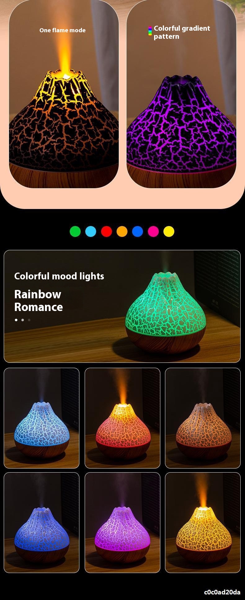 Volcano Humidifier: Wood Grain Fog Mute with Seven-color Ambience Light