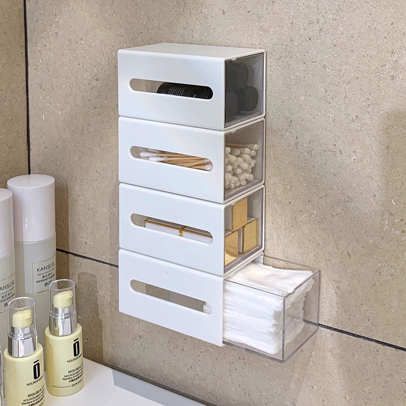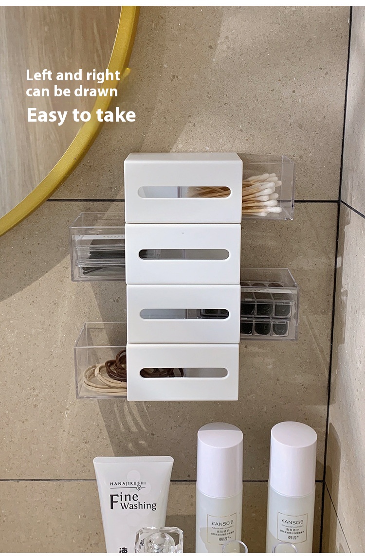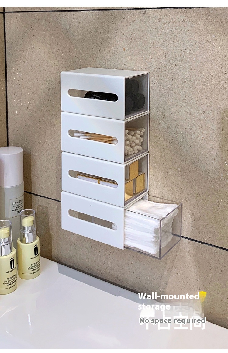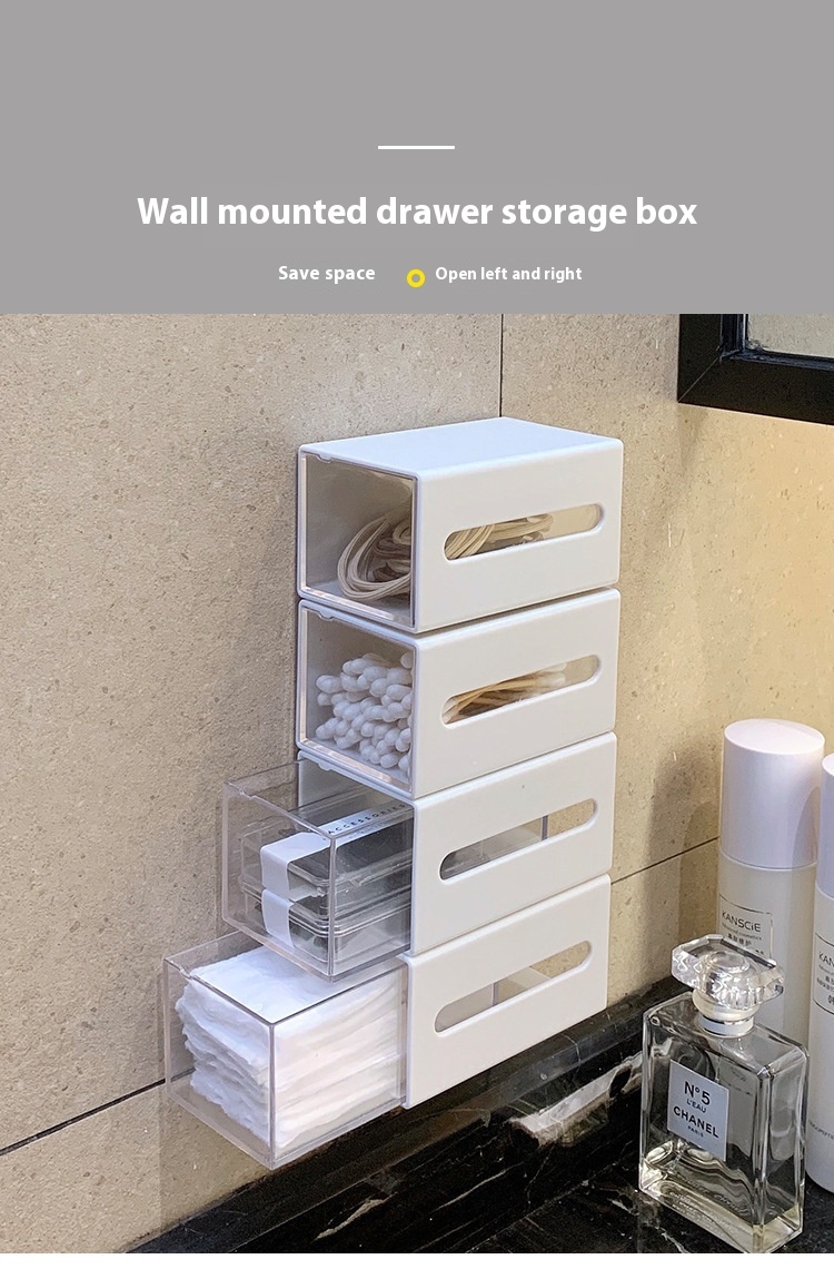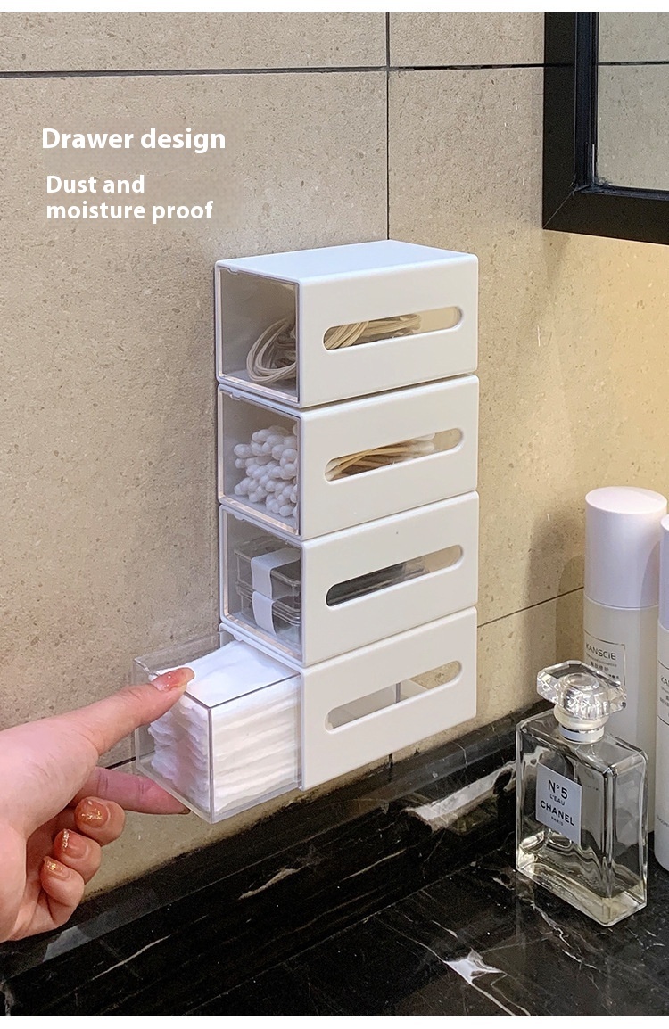 Organize your bathroom with our Wall-Mounted Drawer Storage Box for cotton puffs and cotton swabs. This sleek and functional storage solution keeps your essentials within easy reach.