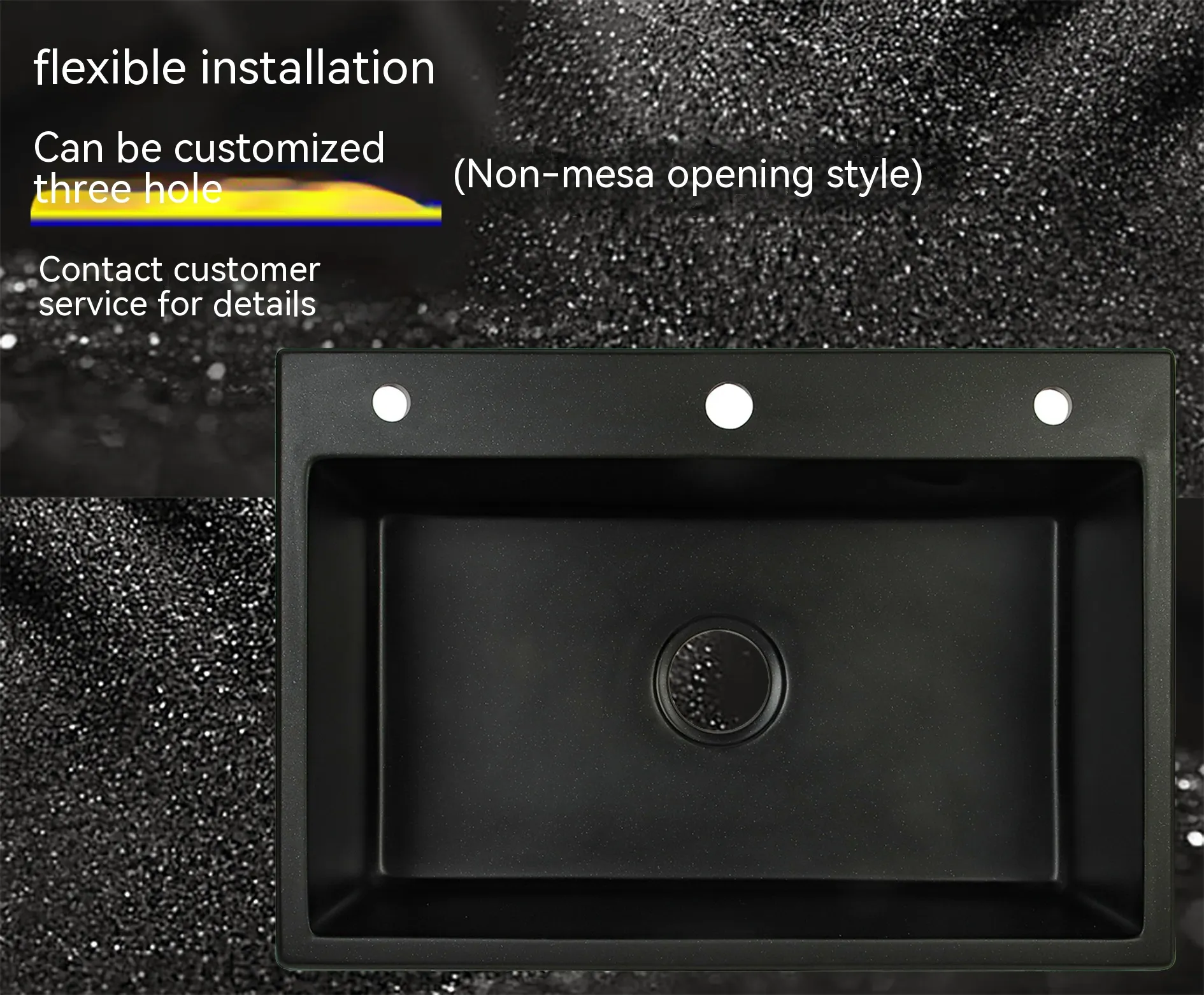 Practical and Spacious: The deep basin of the granite sink is perfect for a variety of kitchen tasks, from washing large