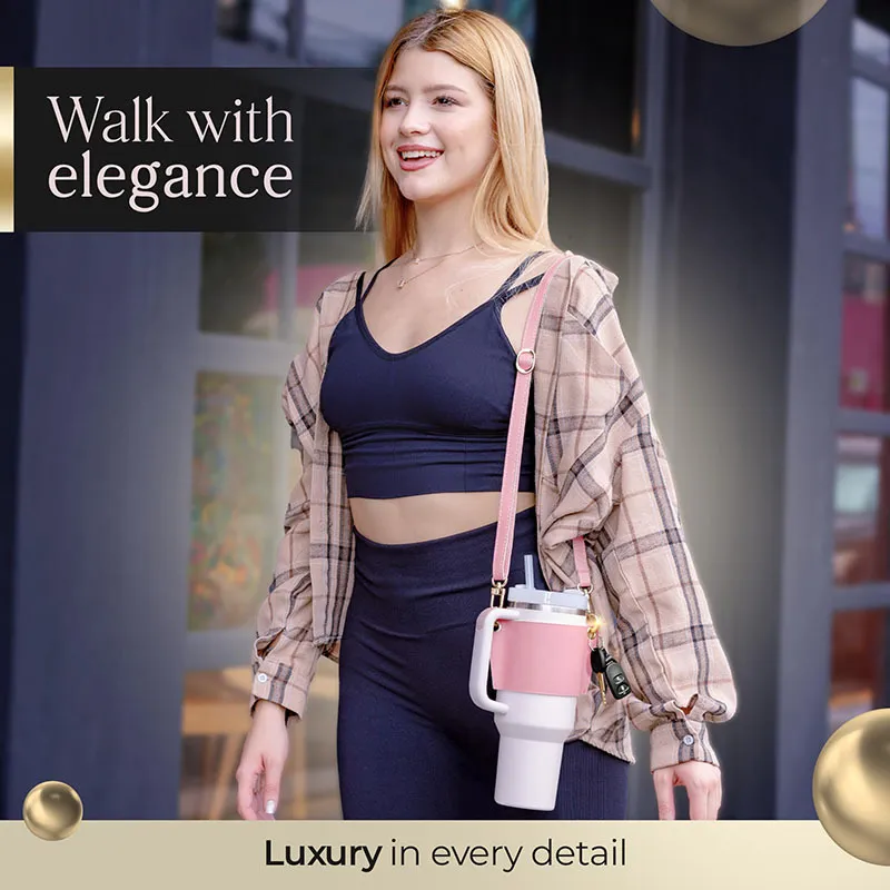 Water Bottle Handle Shoulder Strap For 30-40oz Bottles PU Leather Tumbler Handle Water Bottle Sling Accessory