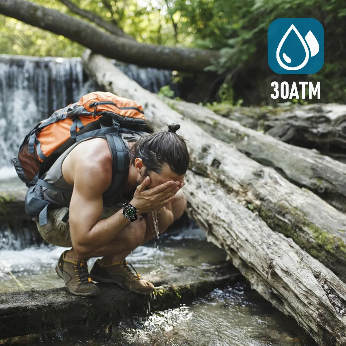 The Waterproof Dual Display Electronic Tactical Watch is crafted from high-quality, shock-resistant materials that withstand rough environments, making it perfect for outdoor use, tactical missions, and daily wear. The watch’s waterproof design provides protection in wet and rainy conditions, so you don’t need to worry about taking it off when faced with water. With its sturdy build, this watch is ideal for New Zealand’s diverse landscapes, from beach adventures to mountain treks.