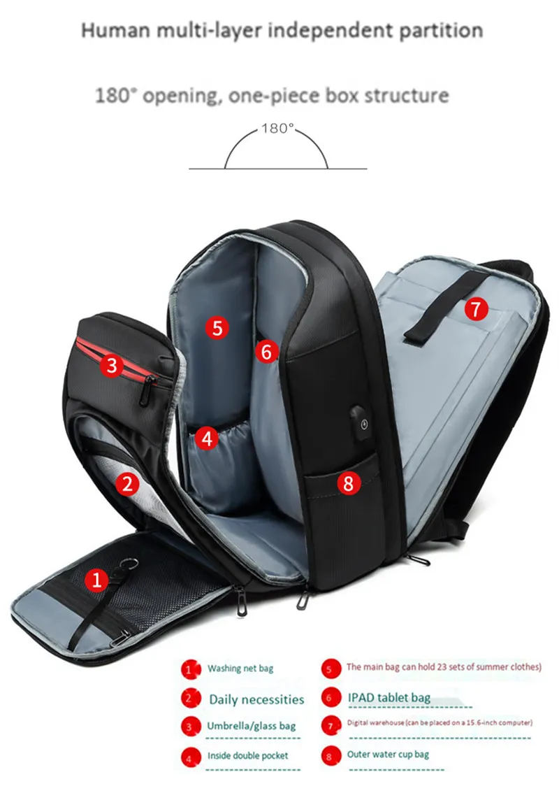 Whether you're on a business trip, vacation, or backpacking adventure, this laptop backpack is designed to make travel easy and hassle-free. It fits perfectly under airline seats or in overhead compartments, and its organized interior helps you keep everything neatly packed and easily accessible.