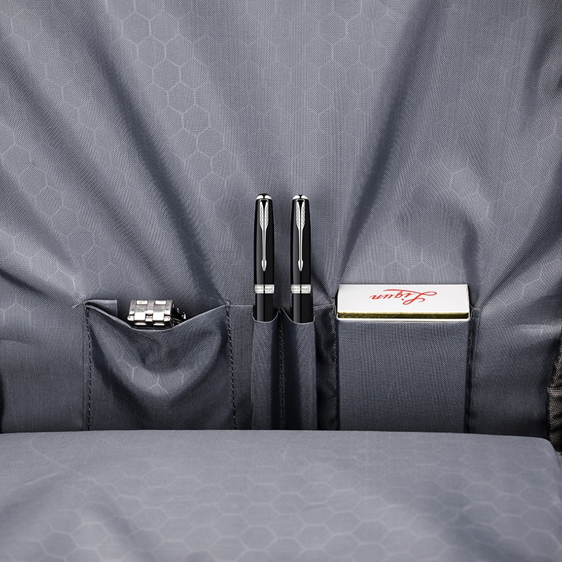 The internal structure of the bag: zipper pocket, mobile phone pocket, ID pocket, computer pocket