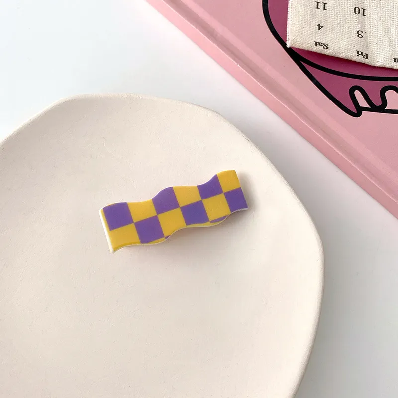 Wavy Checkerboard Hair Clips Sweet Versatile Bangs Clips