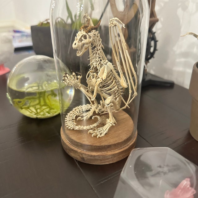 This piece is a digitally sculpted and printed replica of an Wendigo skeleton inside a dome for your curiosity cabinet or just