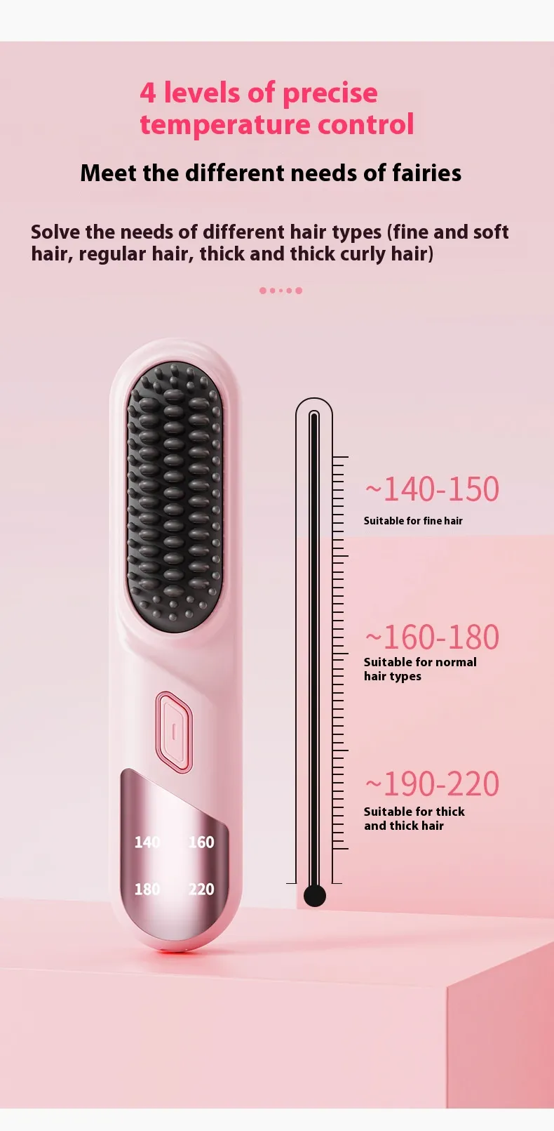 4 adjustable temperature levels from 140 to 200 degrees celsius.