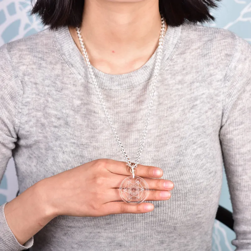 The pendant is crafted in the form of Metatron's Cube, one of the most powerful symbols in sacred geometry. This symbol is associated with spiritual protection, balance, and the flow of divine energy.