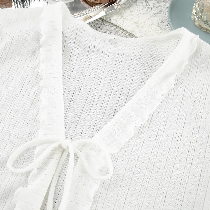 Home › Plants, Gifts, Toys & More › Gift-tree-white-hollow-out-jacquard-pajamas-suit-cardigan-long-sleeve-shorts-homewear