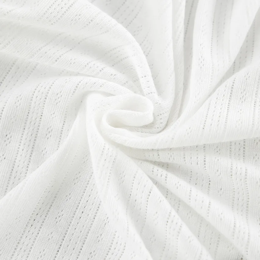 White Hollow-out Jacquard Pajamas Suit Cardigan Long Sleeve Shorts Homewear