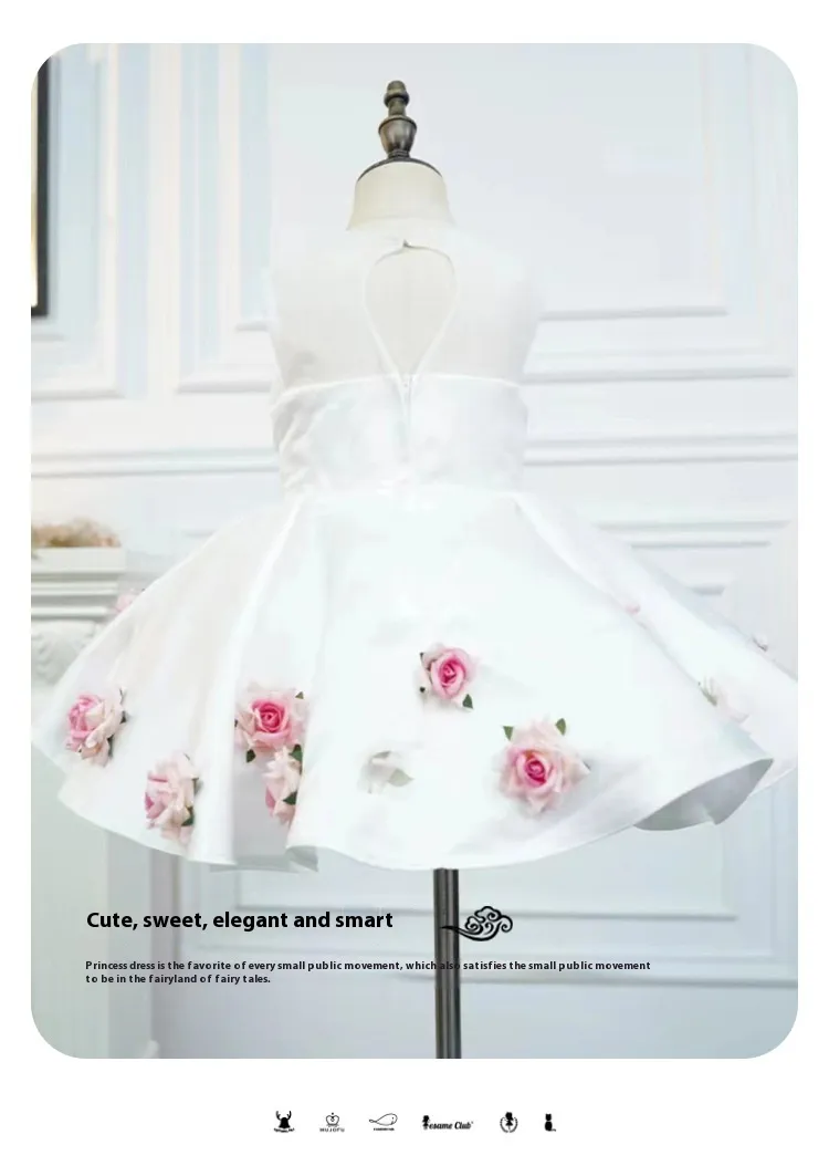The White Three-dimensional Flower Girls' Sleeveless Dress is ideal for weddings, birthday parties, family photoshoots, or