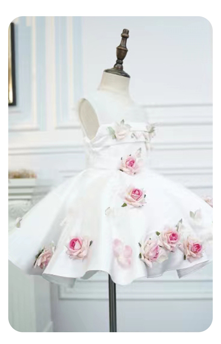 The White Three-dimensional Flower Girls' Sleeveless Dress is an exquisite choice for your little one to wear on her special day. This elegant dress features delicate, three-dimensional flowers that add texture and depth to the design, making it perfect for weddings, birthday parties, or any formal event. The soft white fabric, combined with the intricate floral embellishments, creates a refined and charming look, while the sleeveless design ensures comfort and ease of movement. Whether it’s for a celebration, a photoshoot, or a day of dress-up, this dress will make your little girl feel like a princess.