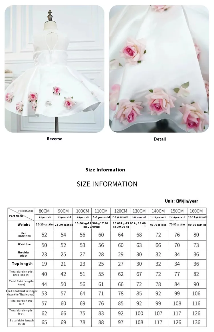 The White Three-dimensional Flower Girls' Sleeveless Dress combines comfort, elegance, and style to make your little one feel like a princess on her special day. Its intricate floral embellishments, soft fabric, and flattering design ensure she will look her best at any formal occasion. Whether it’s for a wedding, birthday, or any other celebration, this dress is the perfect choice to make your child shine with beauty and grace.