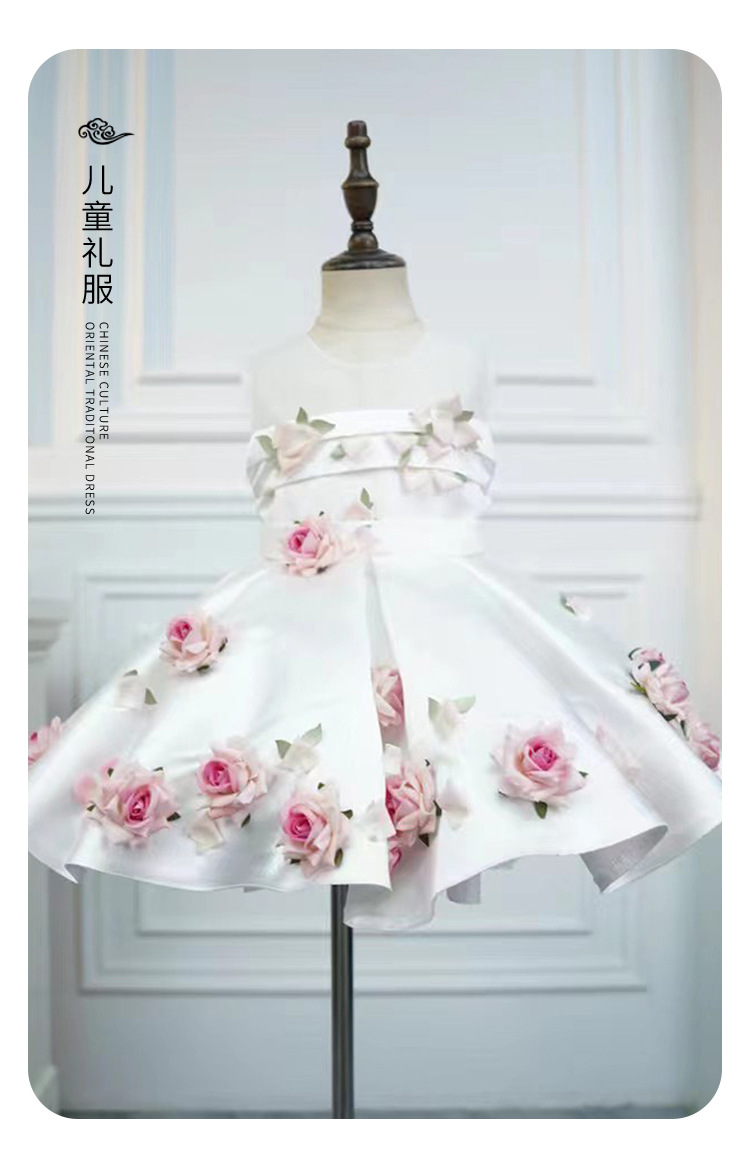 The White Three-dimensional Flower Girls' Sleeveless Dress is ideal for weddings, birthday parties, family photoshoots, or