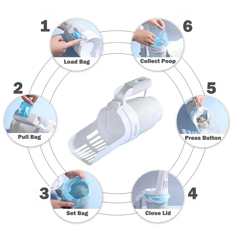 the litter box after each use and dispose of the trash bag. Our user-friendly scoop makes cleaning your cat’s litter box easier than ever.