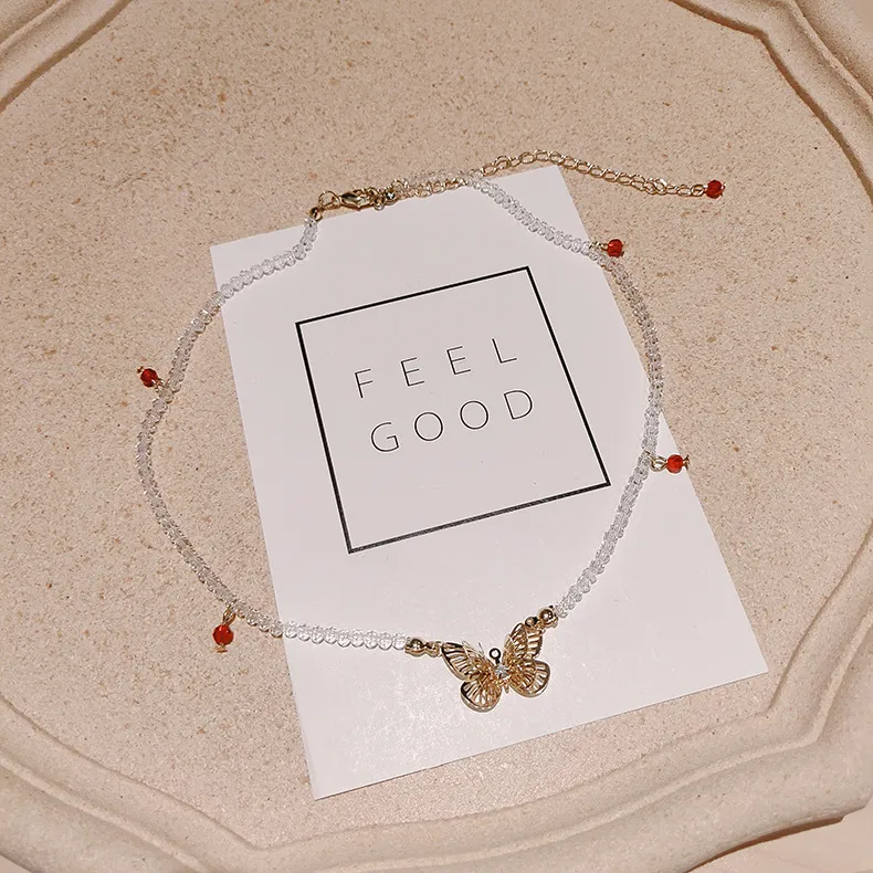Material: artificial crystal + electroplated copper + copper buckle + copper chain
