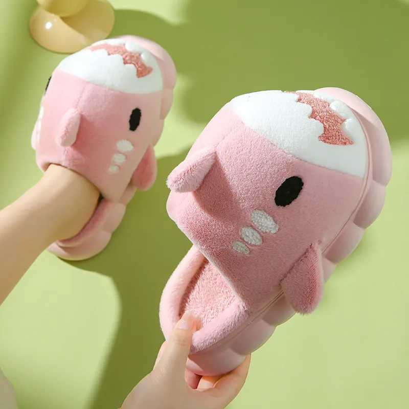 Winter Shark Slippers Fashion Thick Bottom Garden Home Shoes Indoor Non-slip Furry Warm Couple Cotton Slippers Women Men