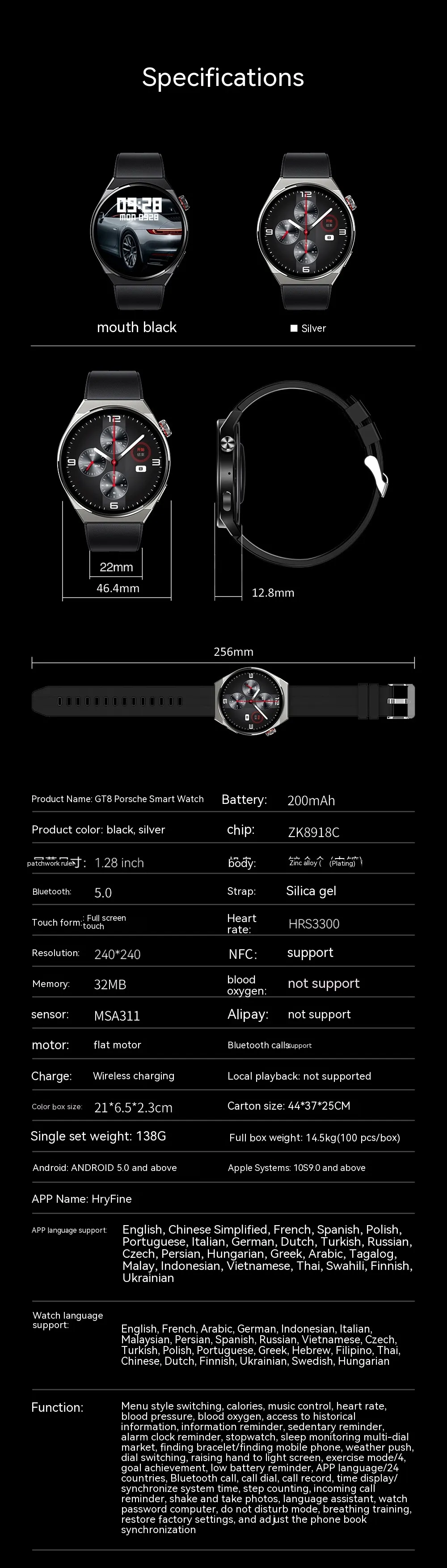 Packing List: watch, charging cable, manual, packing box