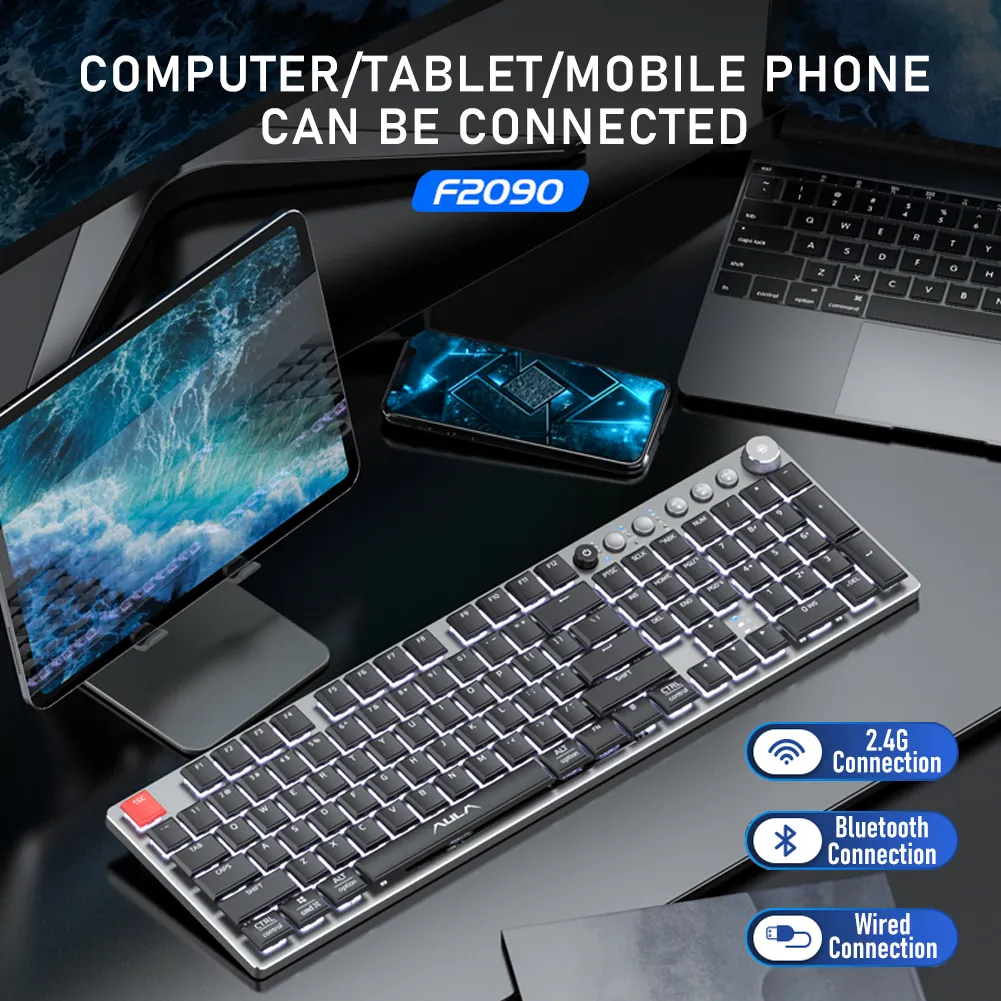 Enhance your typing and gaming experience with the Wireless Mechanical Keyboard – Thin 104 Keys, designed for ultimate comfort and speed. This sleek, compact keyboard offers the precision and tactile feedback of a mechanical keyboard, combined with the convenience of wireless connectivity. Whether you're typing, gaming, or working, enjoy fast, accurate key presses with a low-profile design that takes up less space and reduces wrist strain.