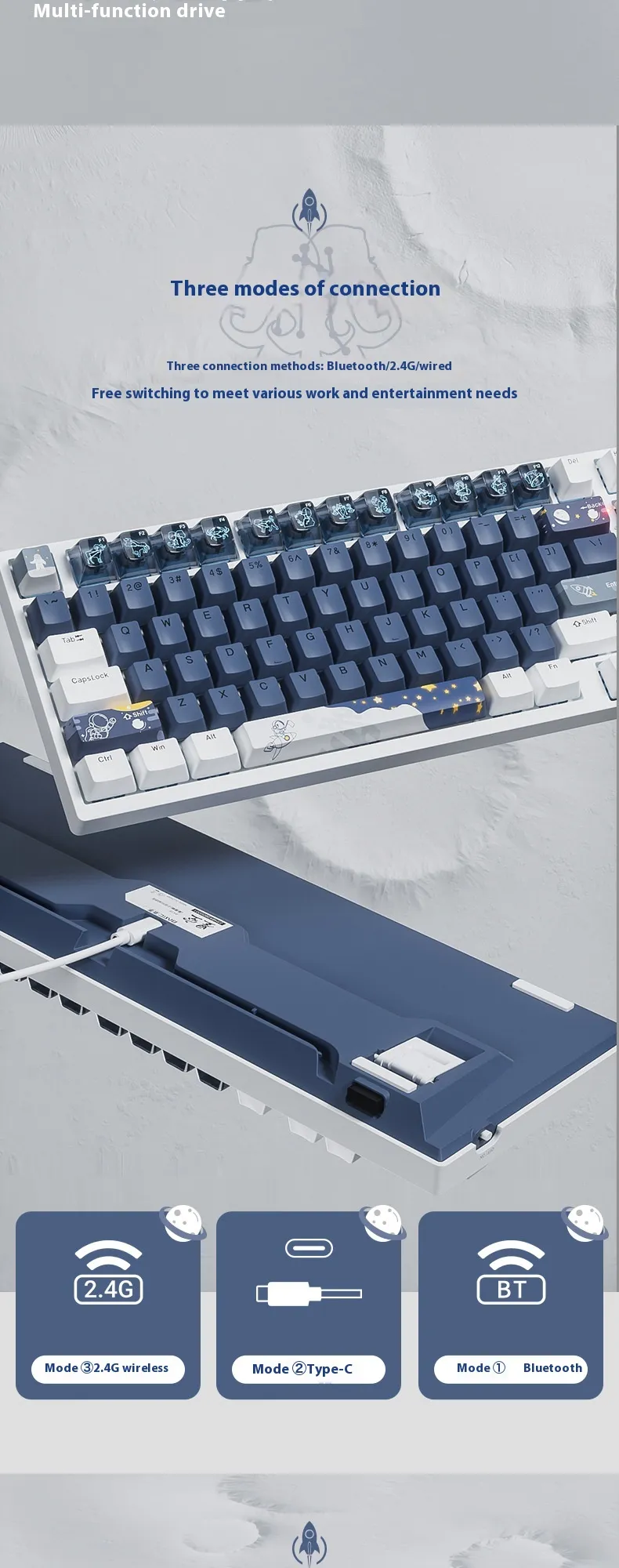 Equipped with three-mode Bluetooth support, this keyboard allows easy switching between multiple devices, including laptops, tablets, and smartphones. Enjoy stable connections and lag-free performance for productivity or gaming.
