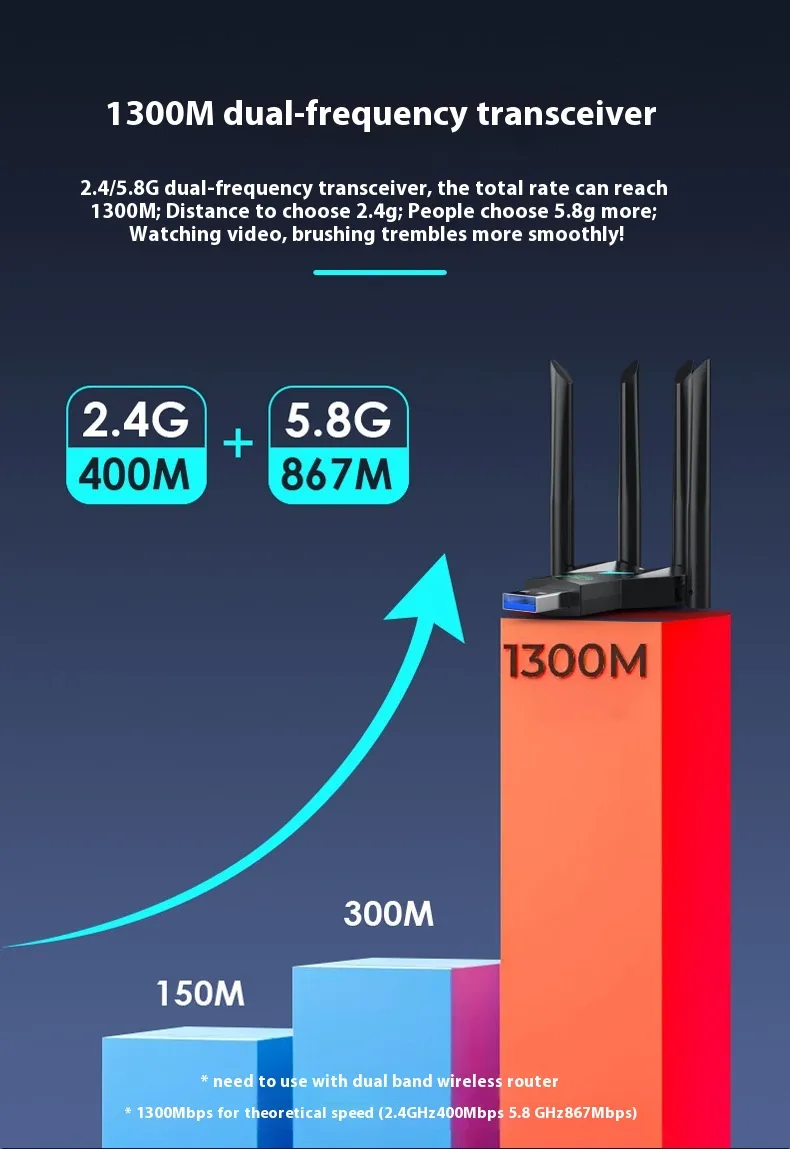 - Enhanced Speed: Supports speeds of up to 1300Mbps for lag-free streaming, gaming, and downloads.