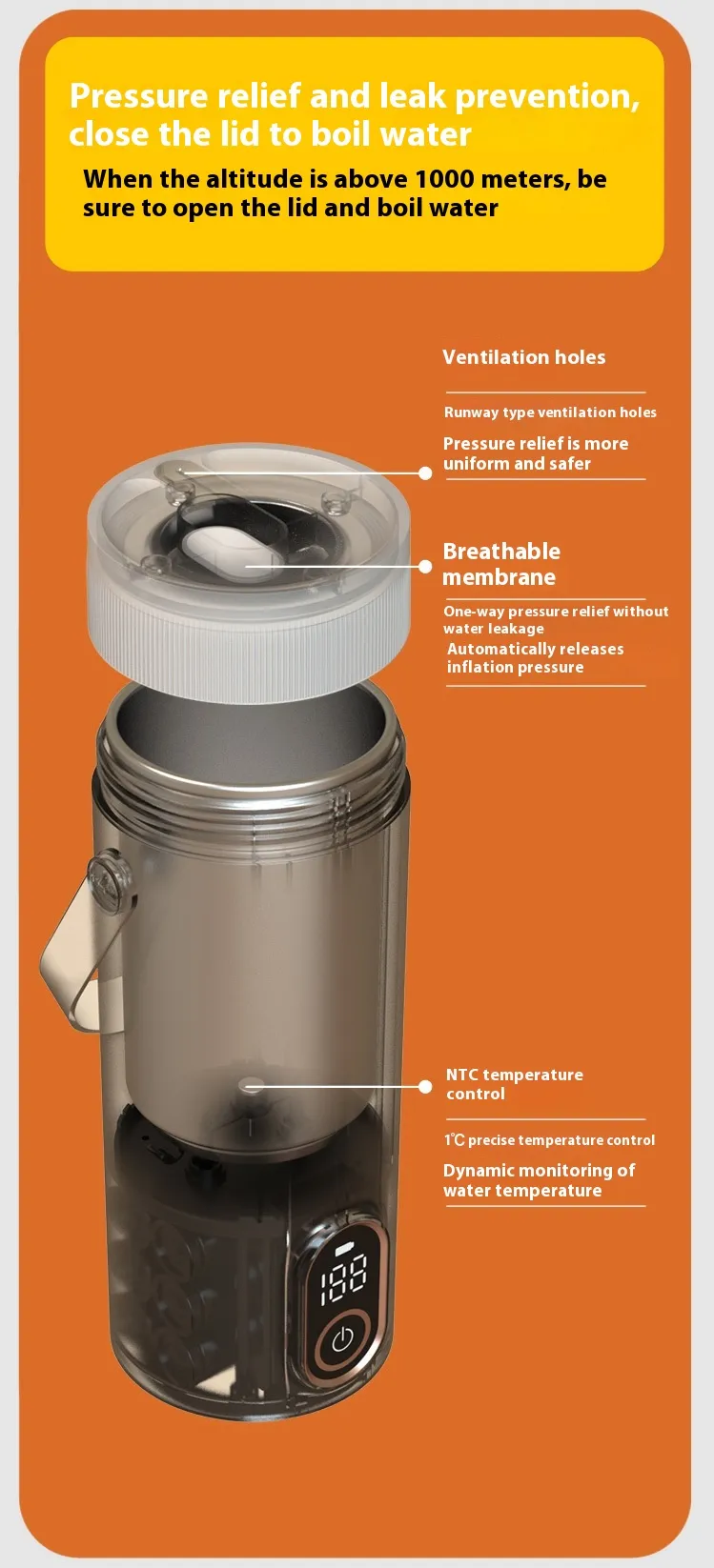 This electric cup comes with a heating element that keeps your beverages at the perfect temperature for extended periods. Whether you prefer your coffee, tea, or hot water to stay warm throughout the day, the cup's electric heating system ensures that your drinks remain at the ideal warmth. No need to worry about cold coffee or tea during long meetings or travel.