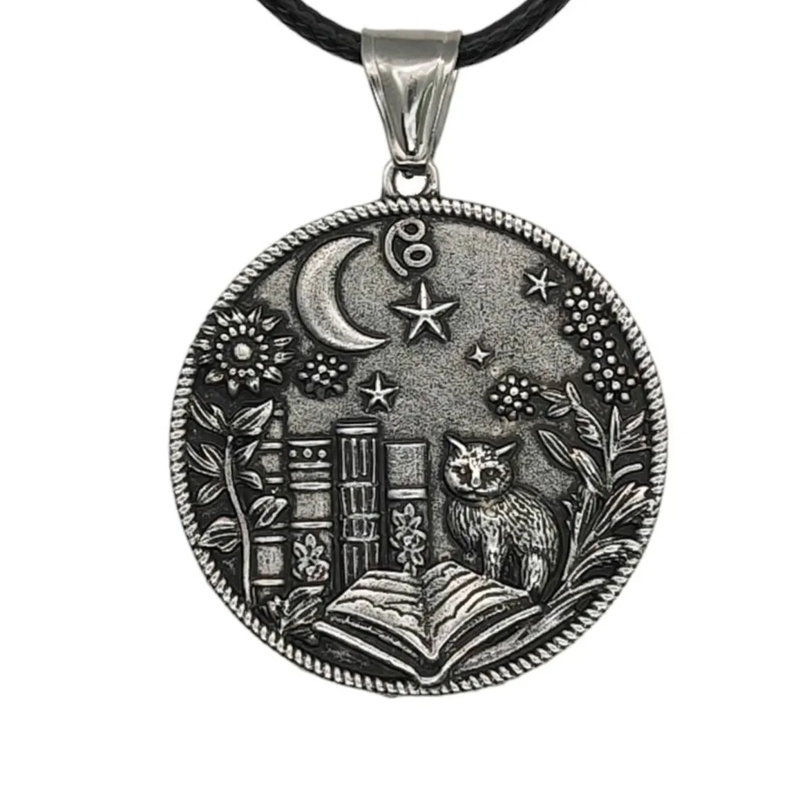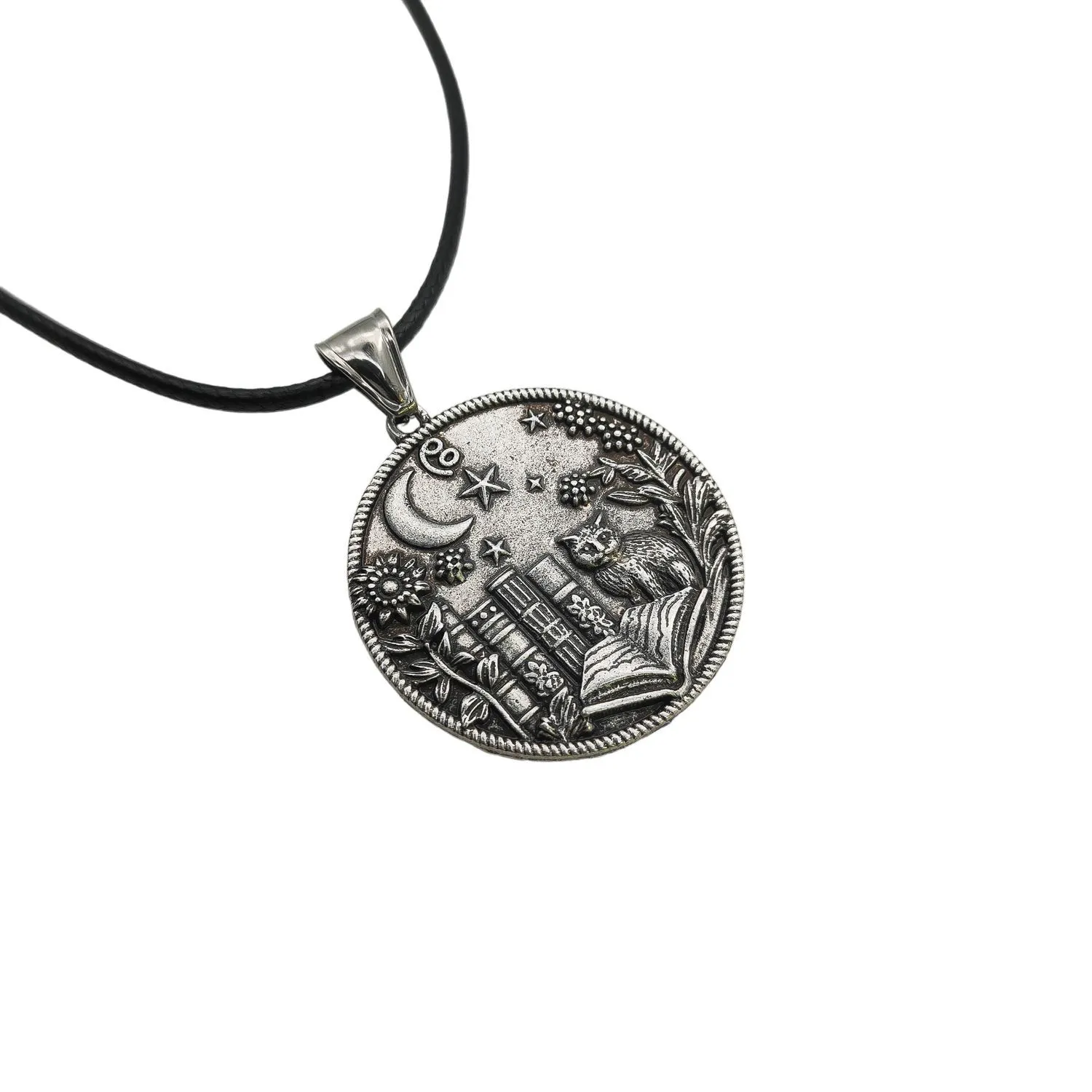 Wizard Cat Reading Witchcraft Pendant Necklace