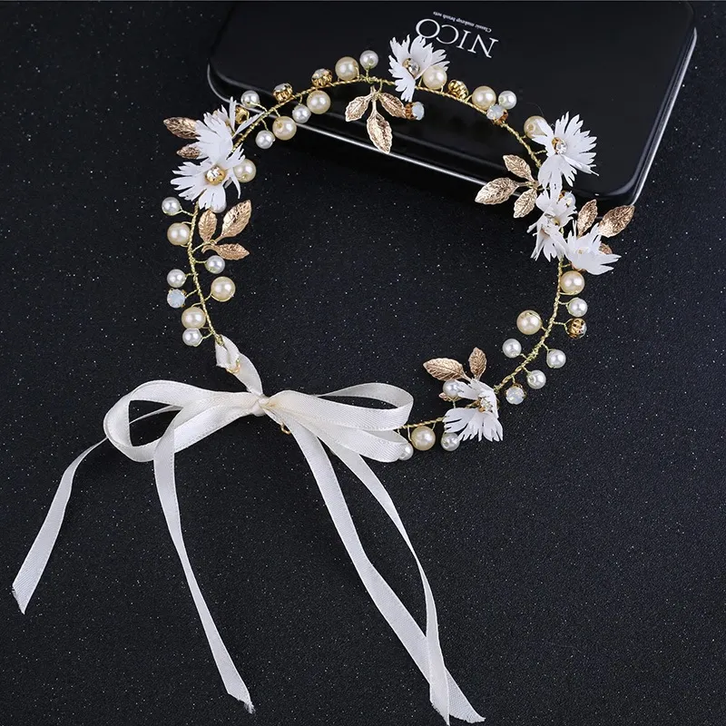 Women Flower Headband With Ribbon Wreath Wedding Party Ladies Girls Garlands Floral Crown Hairband NIN668