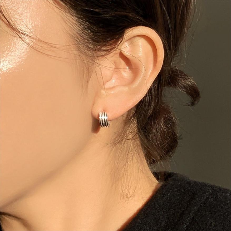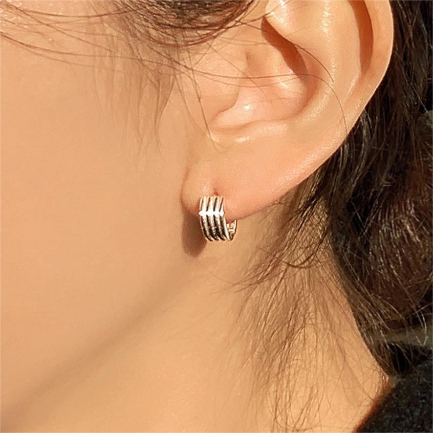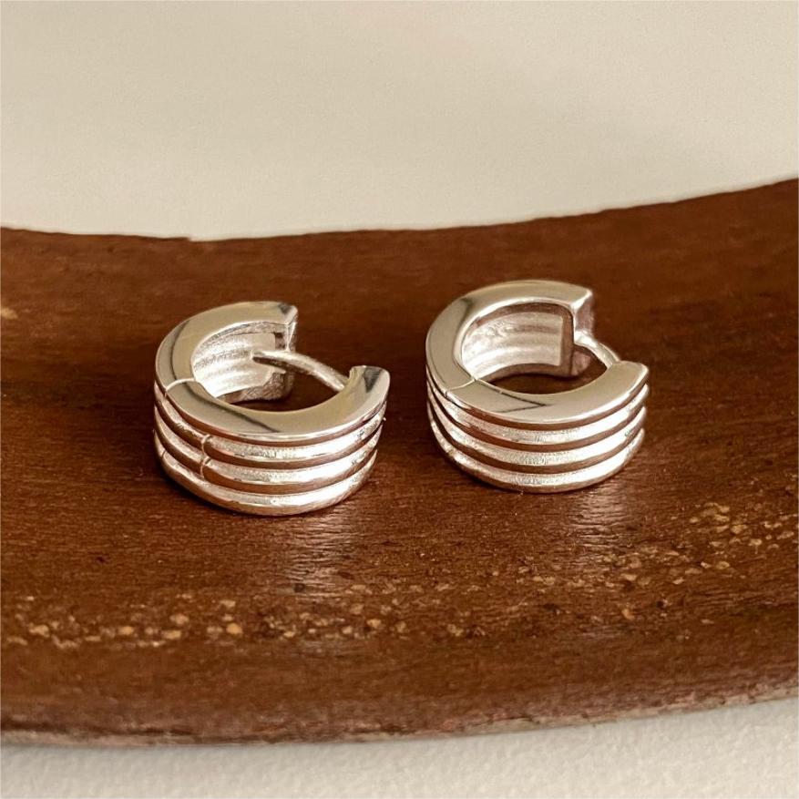 Women's 925 Sterling Silver Striped Minimalist Trendy Earrings