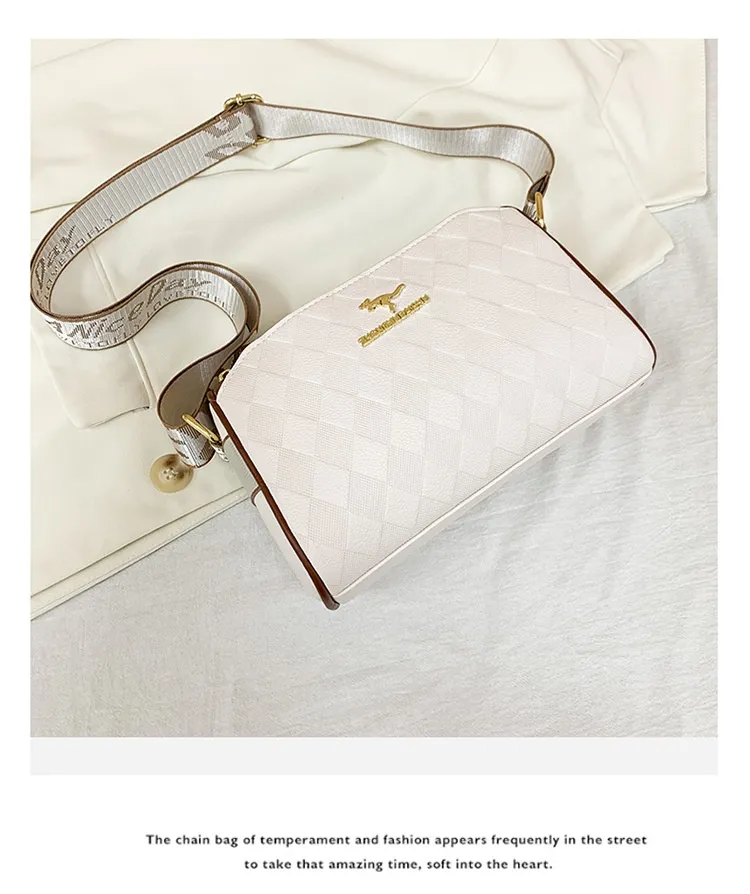 Women's Bag Chessboard Plaid One Shoulder Bag Wide Shoulder Strap Messenger Bag Retro Style Kangaroo Handbag Bags