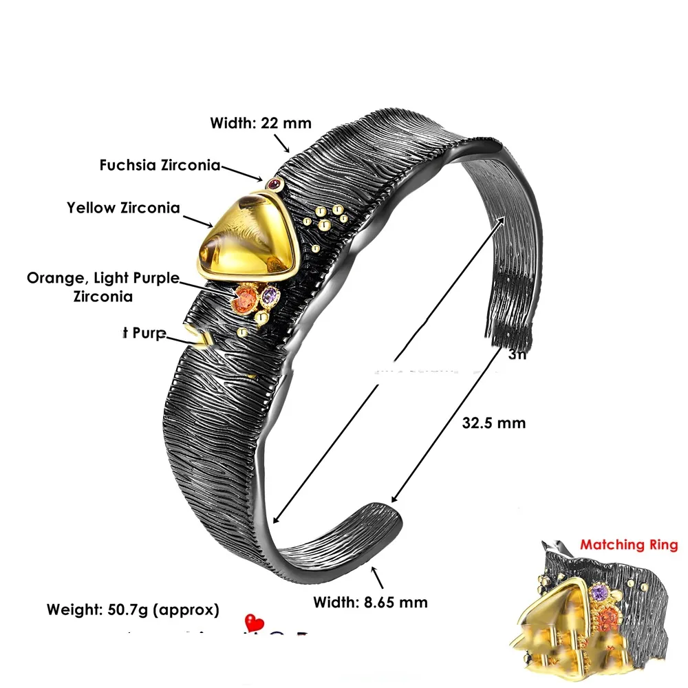 Whether you're looking to make a bold fashion statement or add a stunning focal piece to your accessories, this bracelet is an ideal choice. The yellow stone adds warmth and energy to the piece, while the thick opening ensures a comfortable and adjustable fit for all wrist sizes.