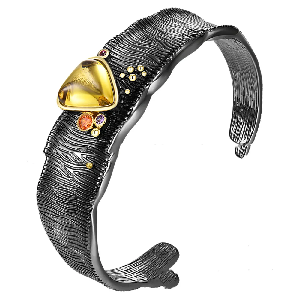 Women’s Bracelet With Thick Opening and Yellow Stone: A Bold and Elegant Statement