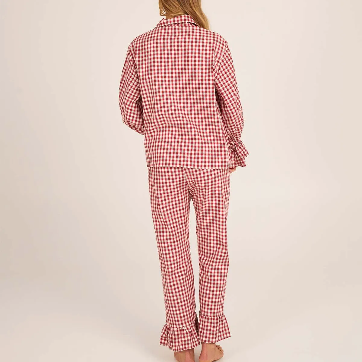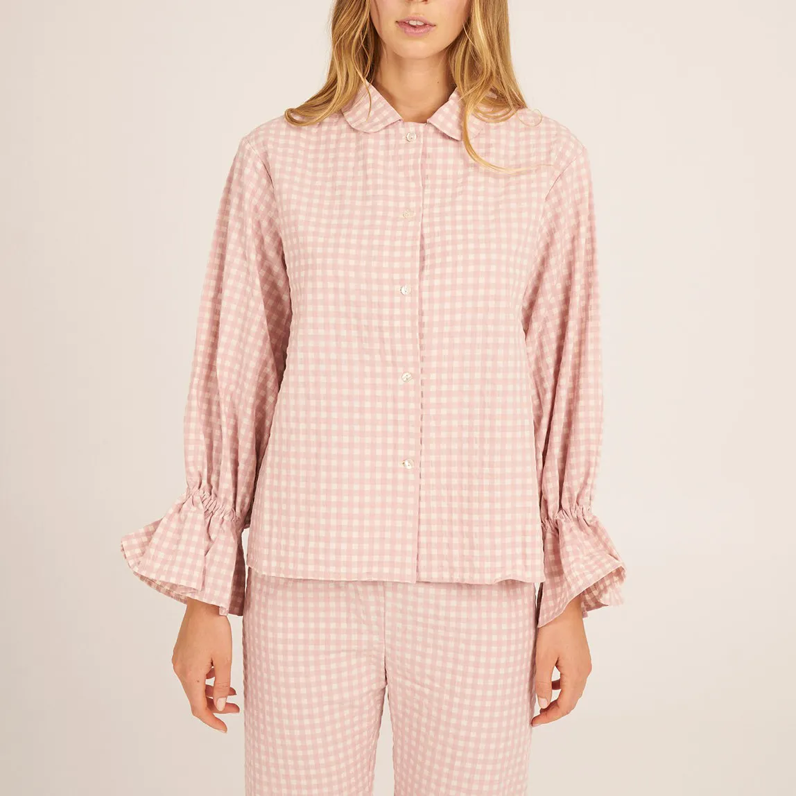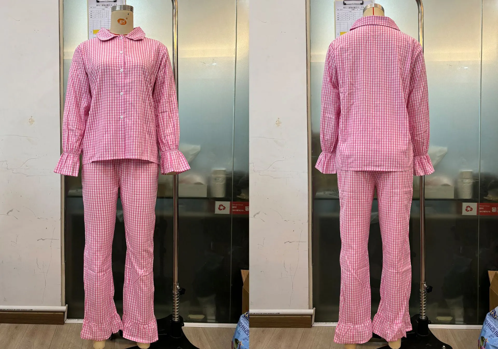 - Style: Two piece gingham outfits pajama, front tie up plaid shirt lounge pants set, loungewear set women, ruffle pants pj set, tie front peplum pajama set, matching ph set for women sleepwear.