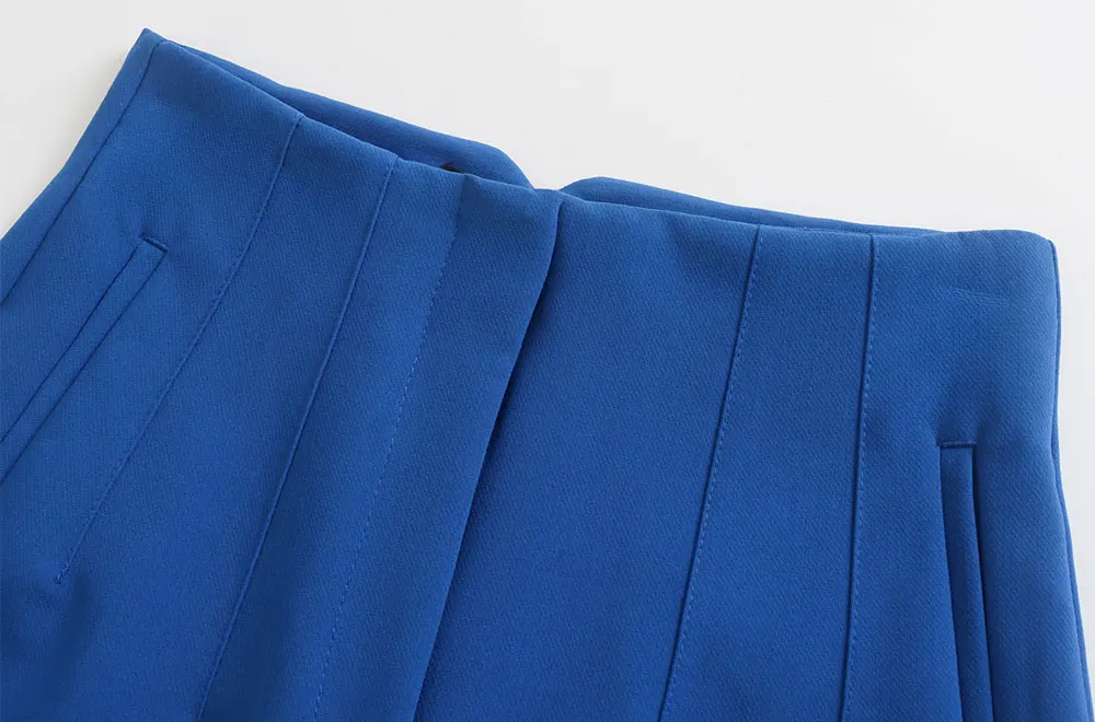 The high-waist cut accentuates the waist, creating a flattering silhouette that pairs well with tucked-in tops and blazers. This design
