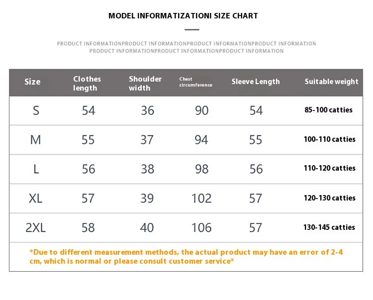 Size: S size 42.50 kg-50.00 kg, M size 50.00 kg-55.00 kg, L size 55.00 kg-60.00 kg, XL size 60.00 kg-65.00 kg, size XXL 65.00 kg-72.50 kg