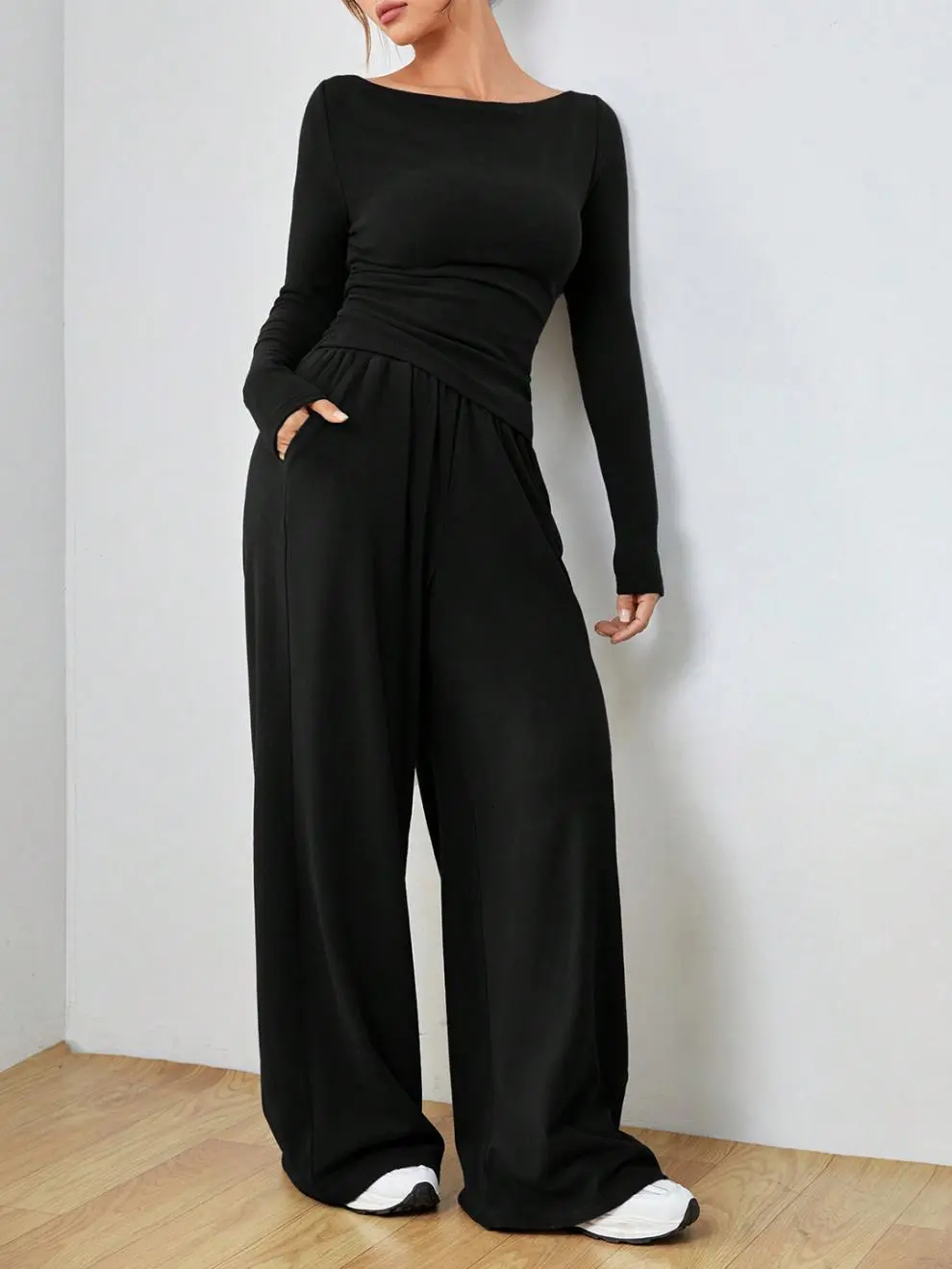 This casual suit is perfect for various settings, including work, casual day outings, or even semi-formal events. Its minimalist yet stylish design ensures you look chic and feel comfortable, no matter the occasion. The long sleeves and breathable fabric make it ideal for transitional seasons like spring and fall.