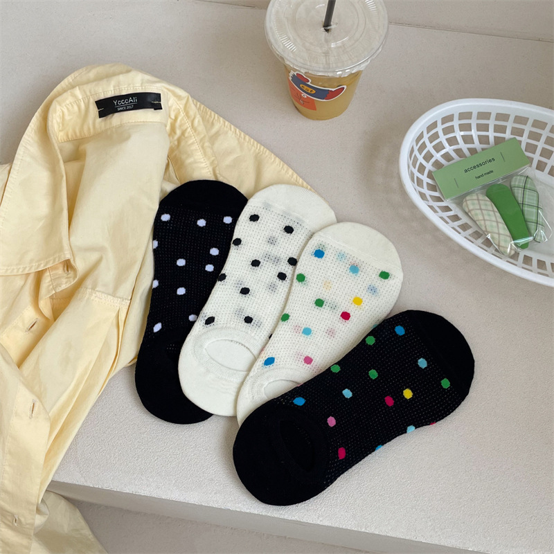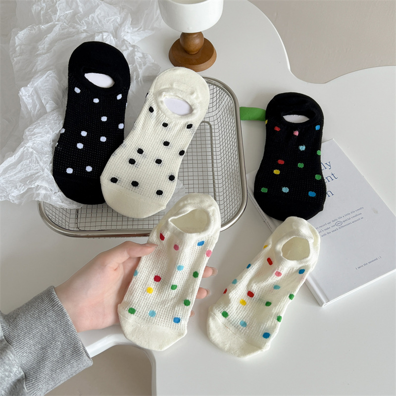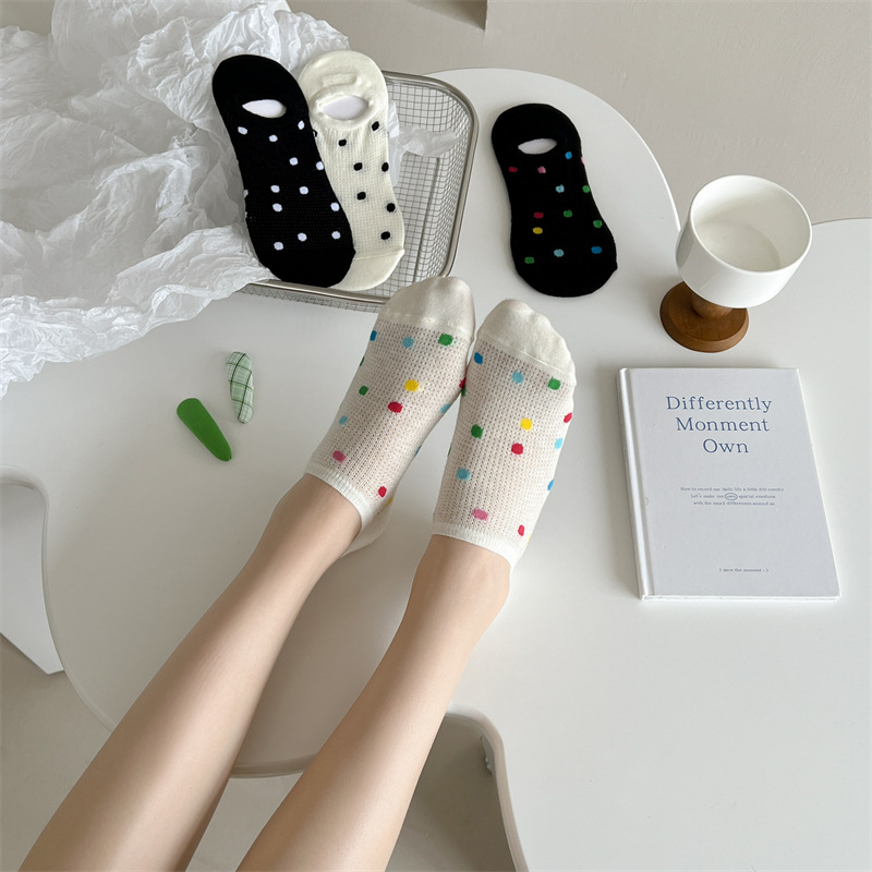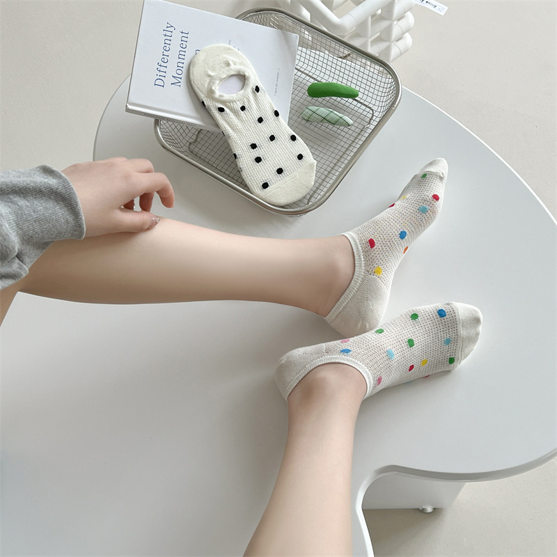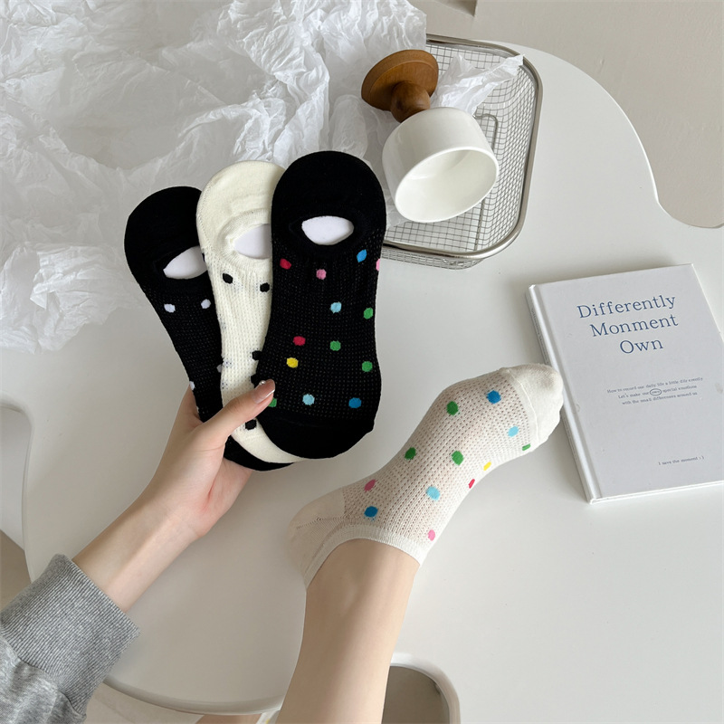Women's Colored Polka Dot Cotton Low Cut Socks