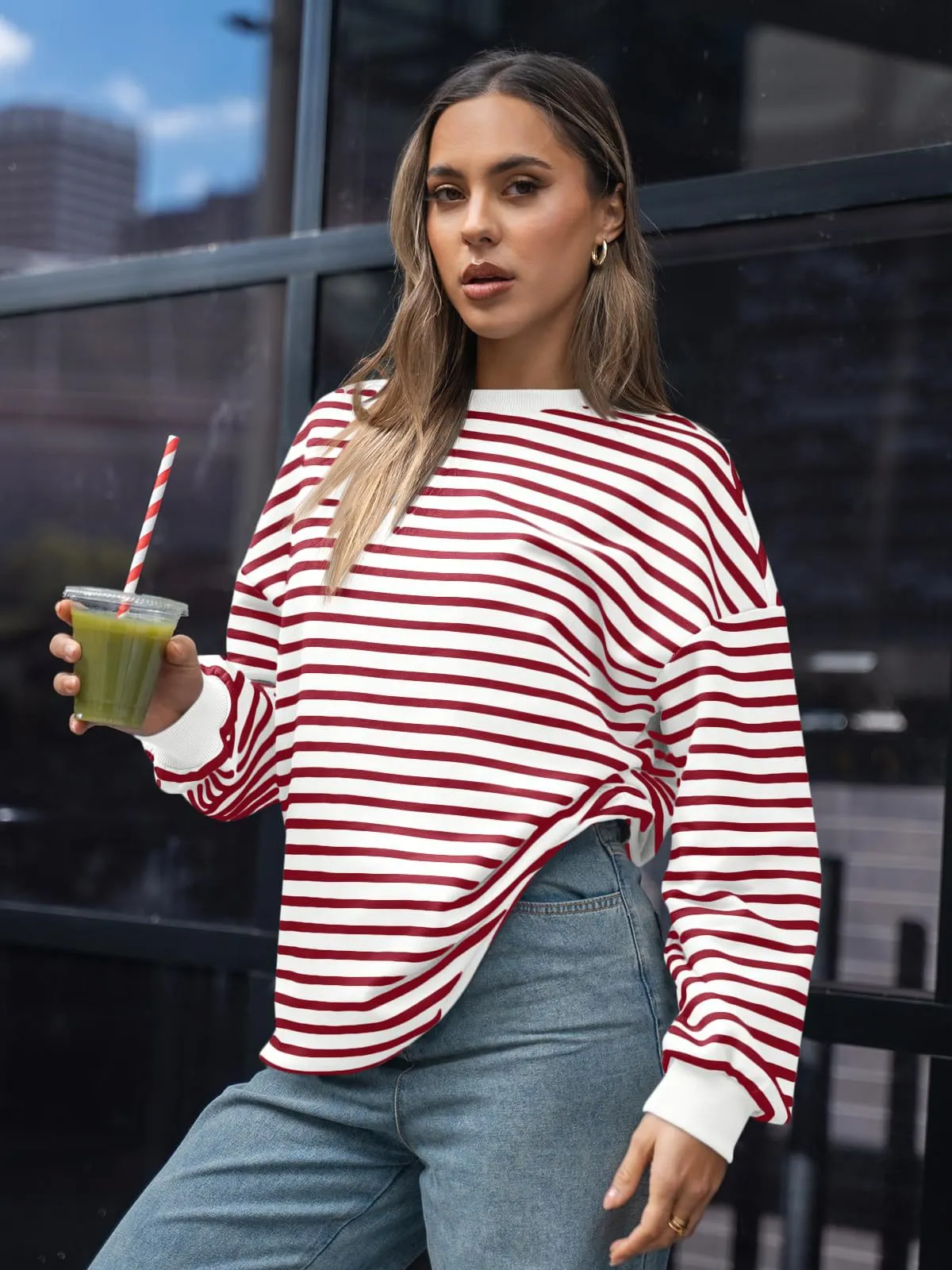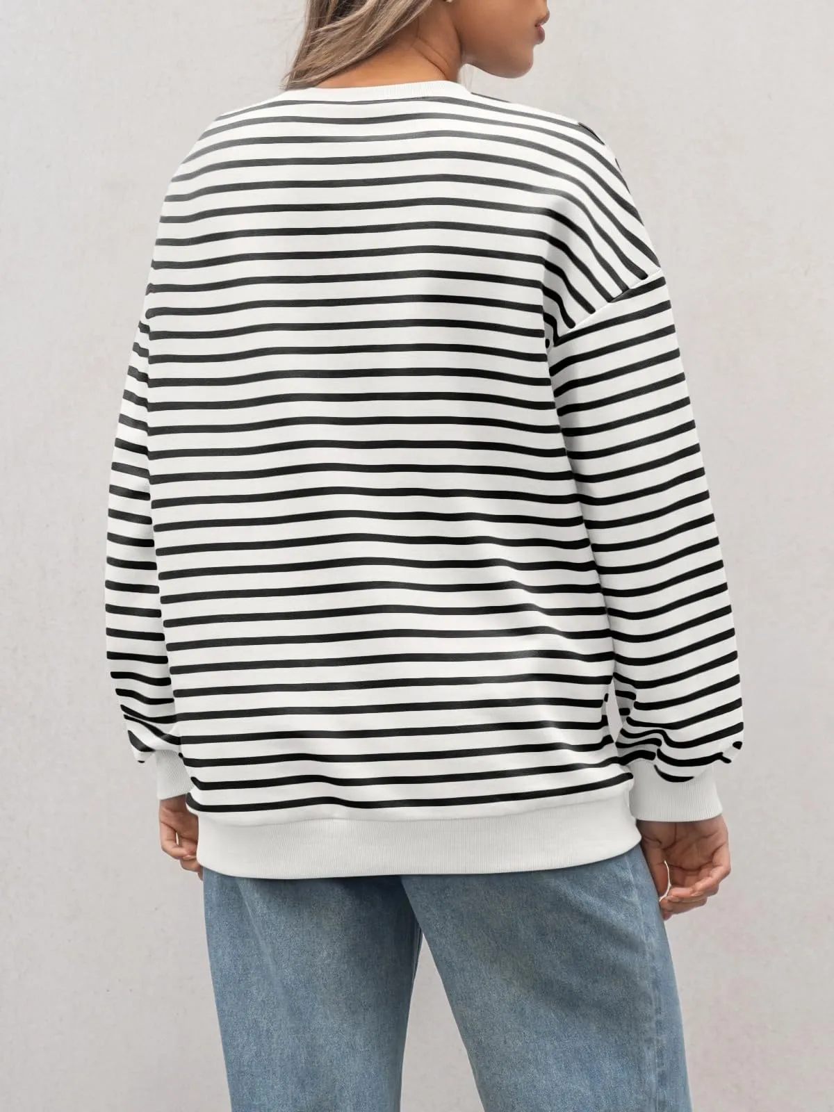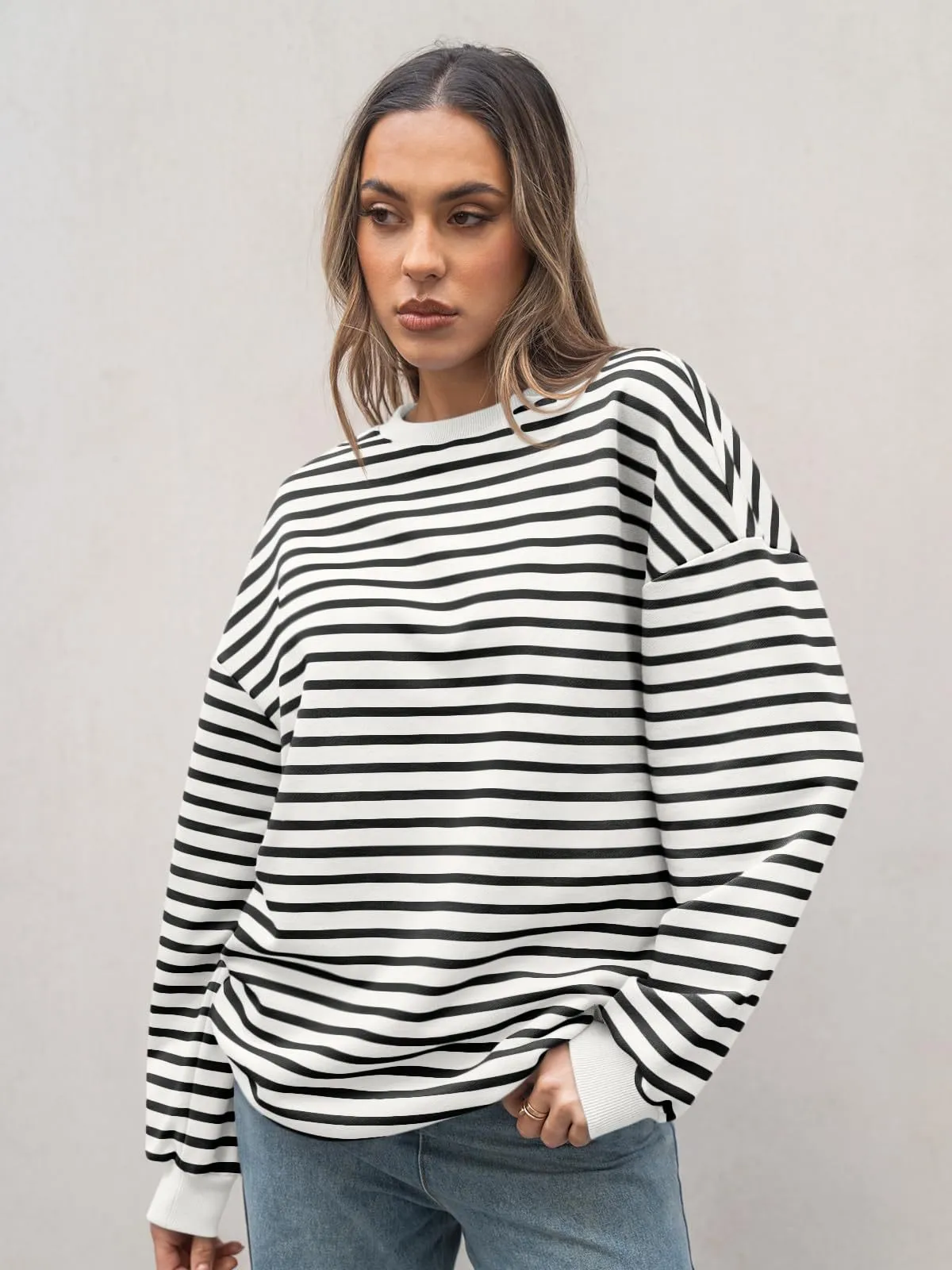 Women's Colorful Striped Round Neck Loose Sweatshirt