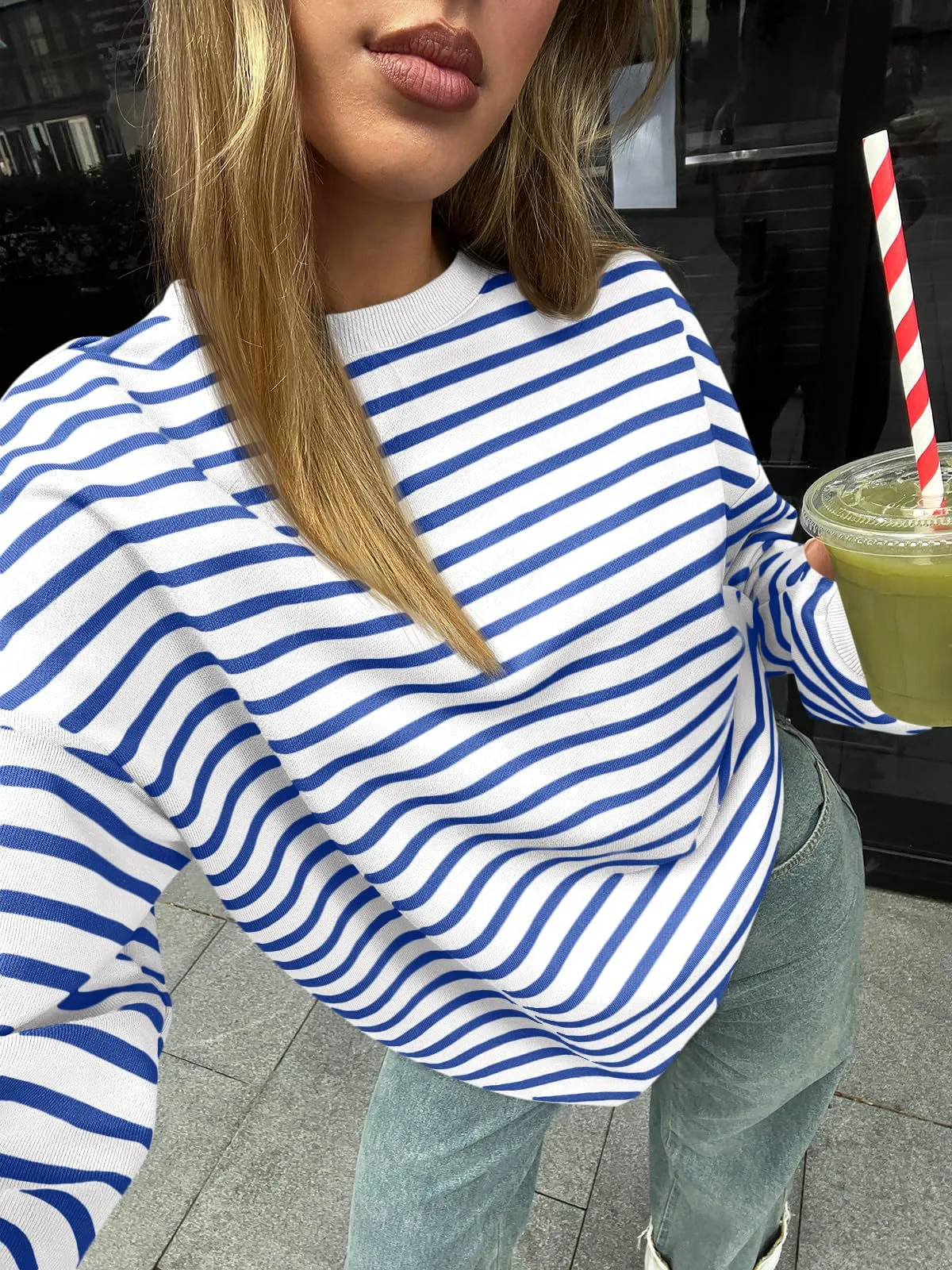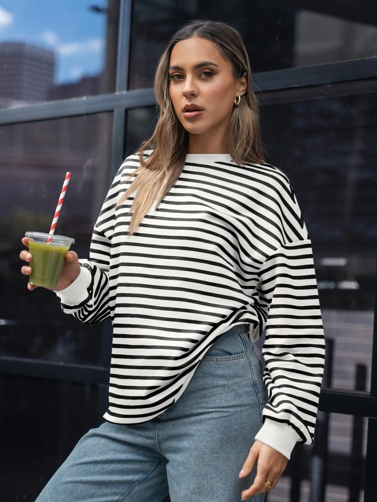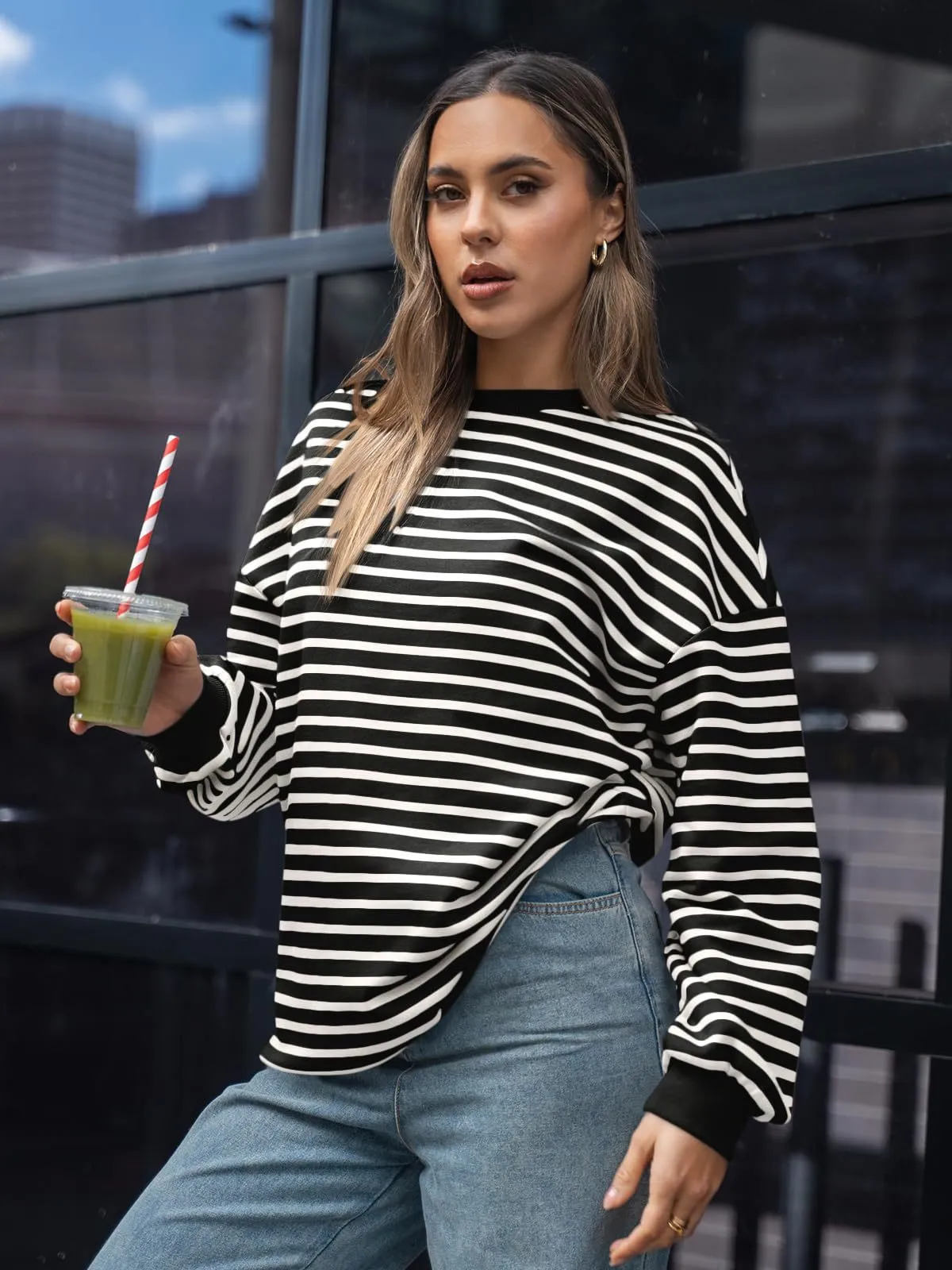 Women's Colorful Striped Round Neck Loose Sweatshirt