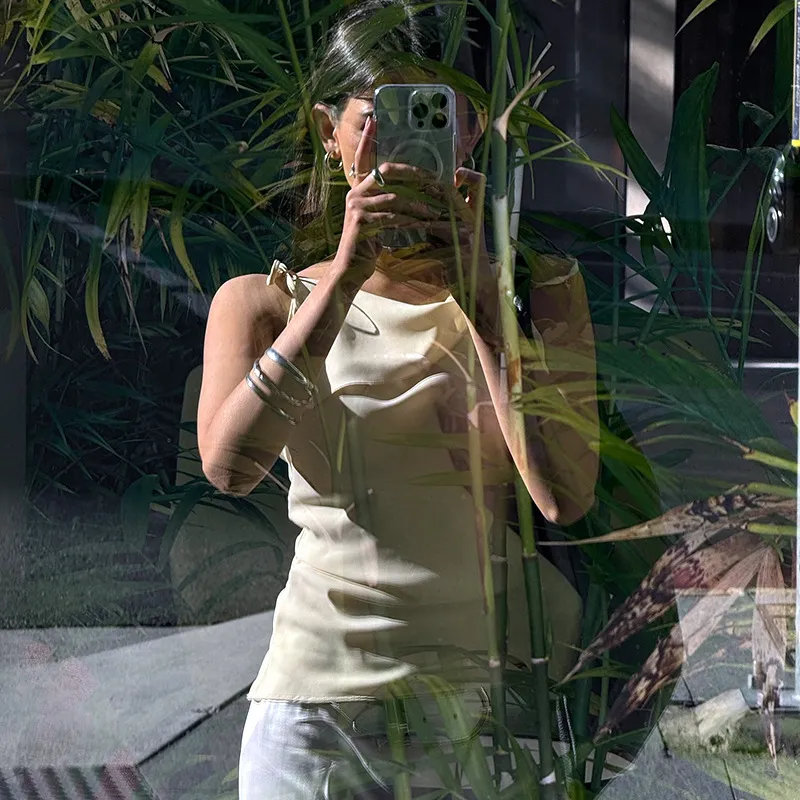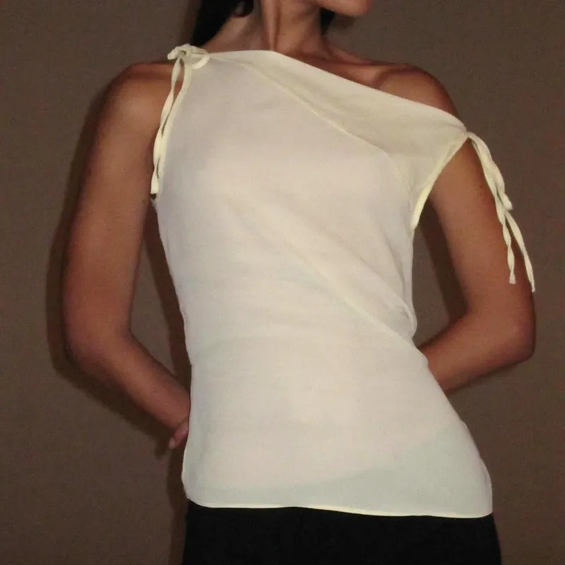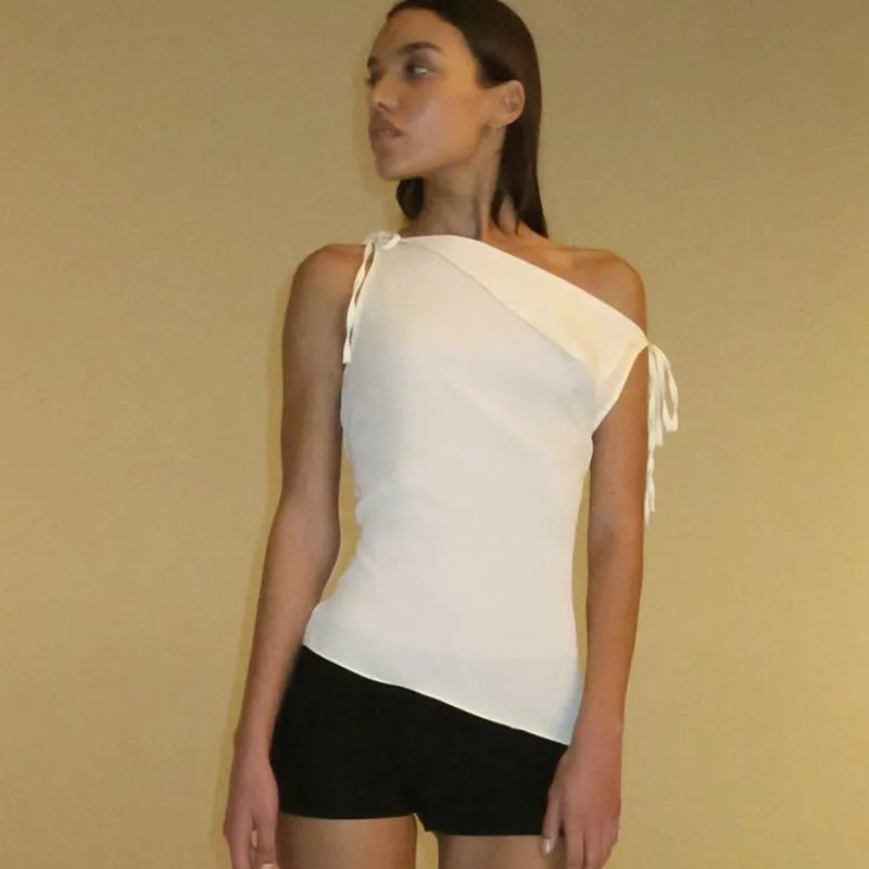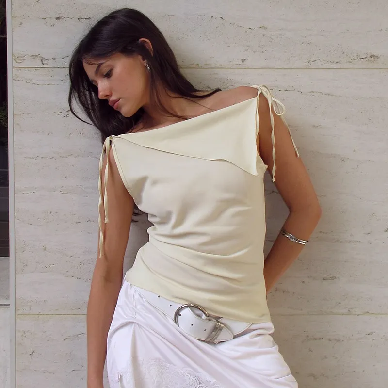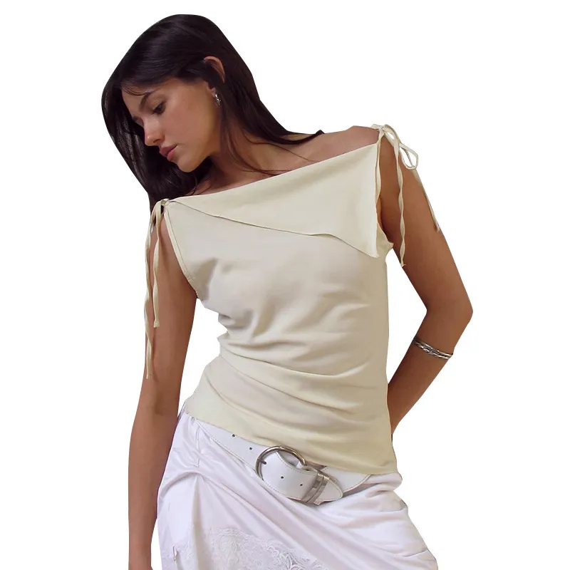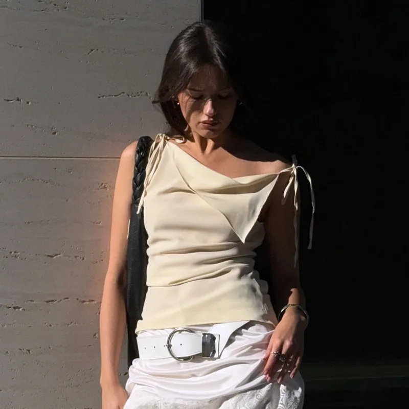 Women's Drawstring Patchwork Sleeveless Irregular Temperament Vest T-shirt Top