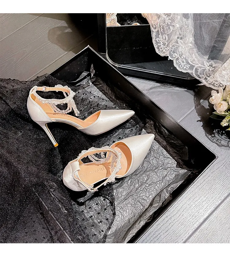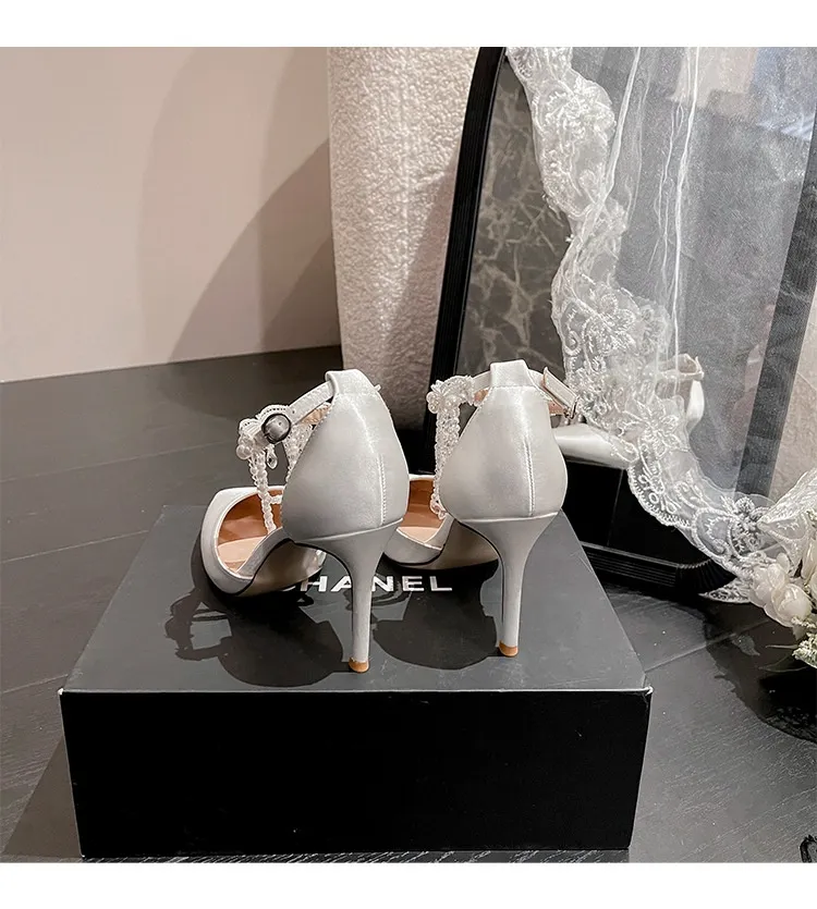 - Features delicate details like ankle straps, buckles, or embellishments (crystals, beads, etc.).