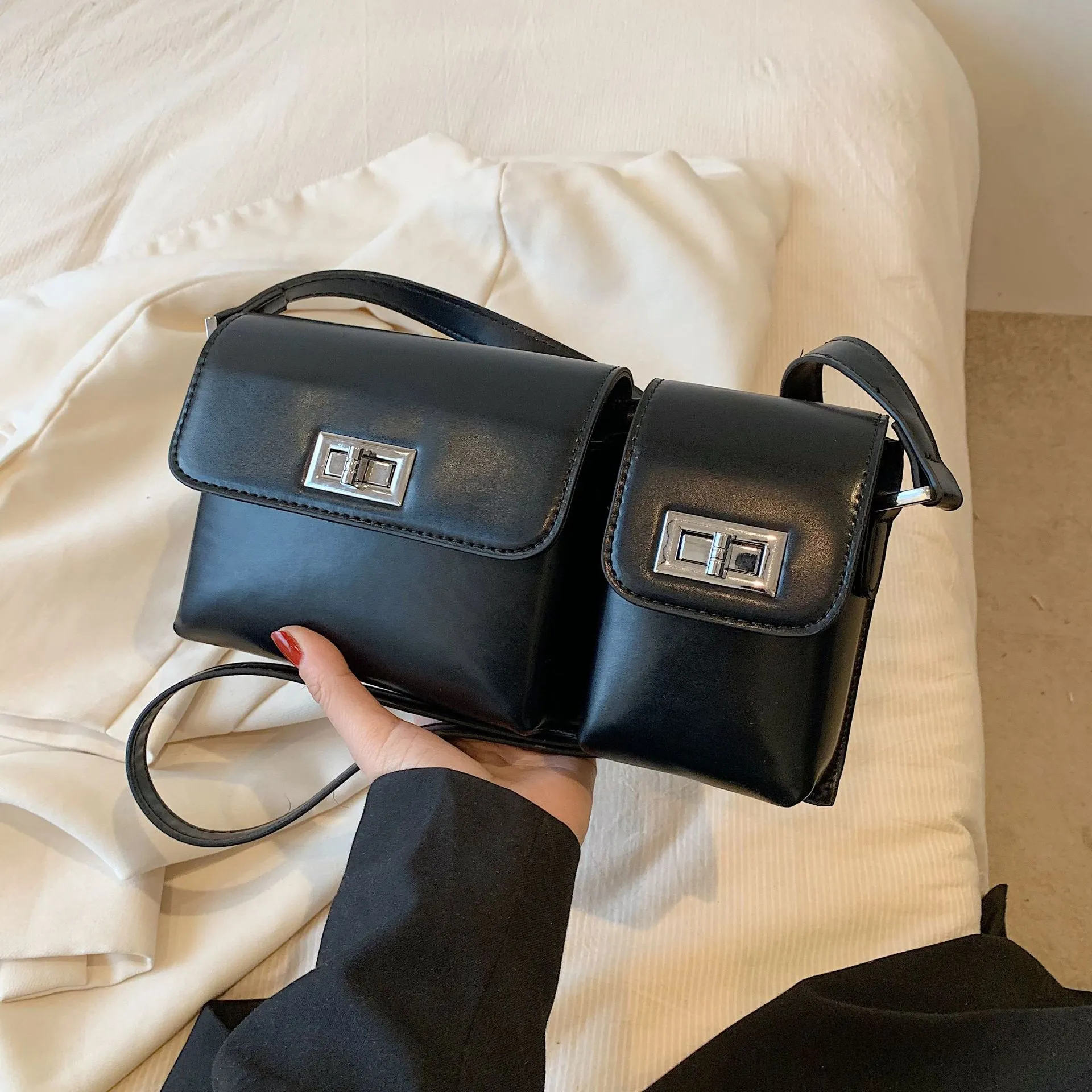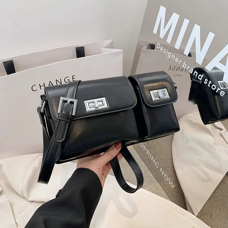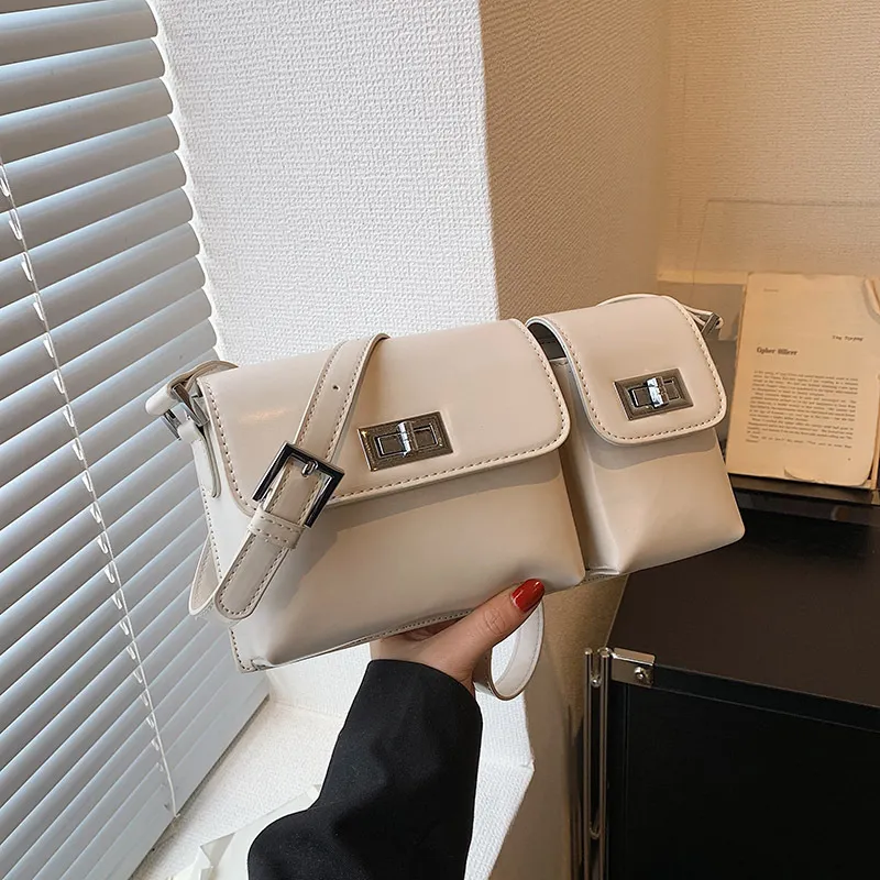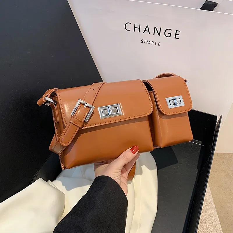 Women's Fashion Double Pocket Underarm Retro Shoulder Messenger Bag