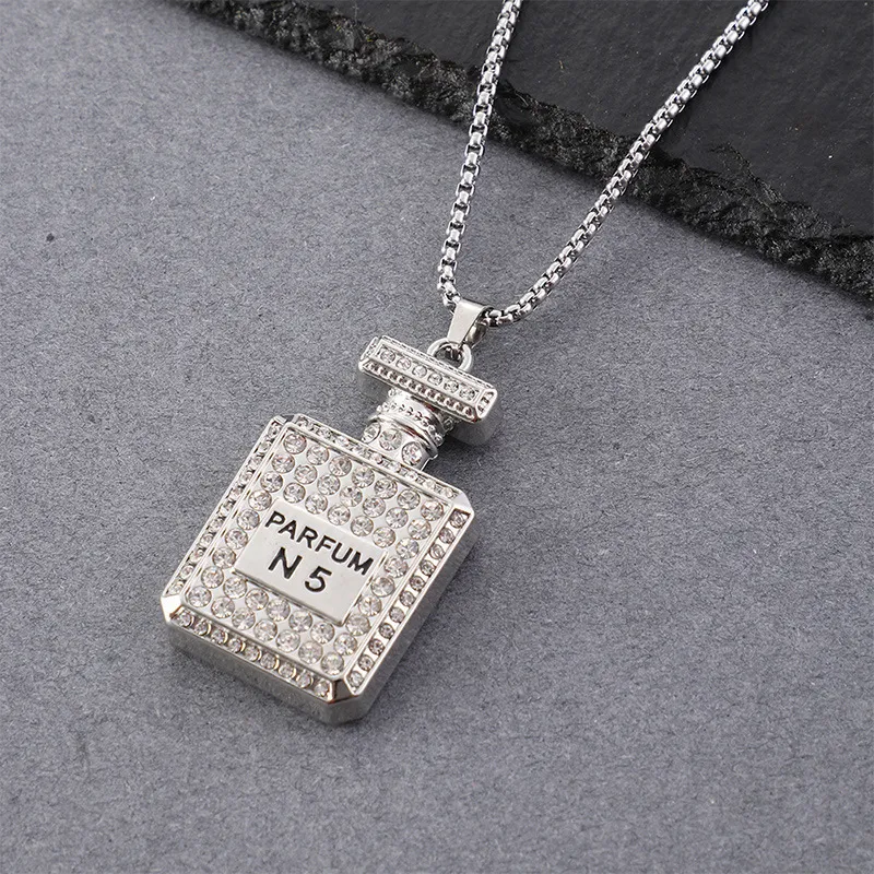 Color: diamond inlaid perfume bottle necklace