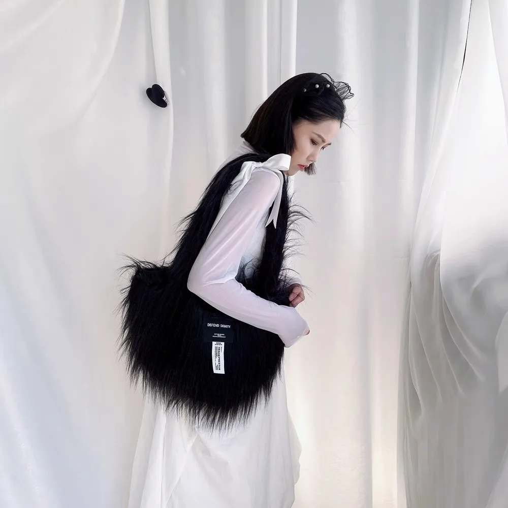 Color: Pink long hair arc bag, white long hair arc bag, blue long hair arc bag, black long hair arc bag, green long hair arc bag