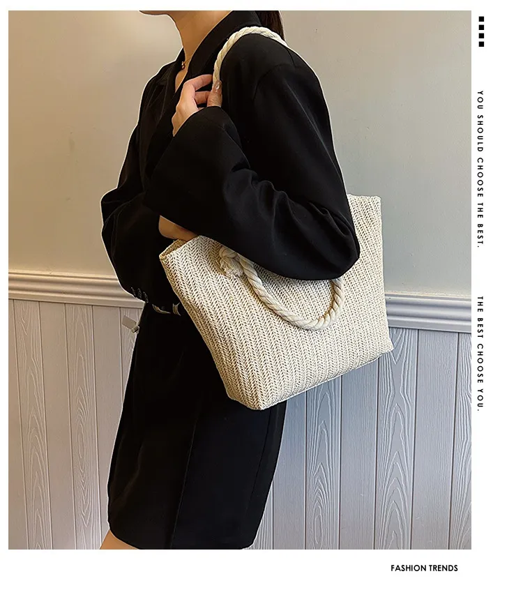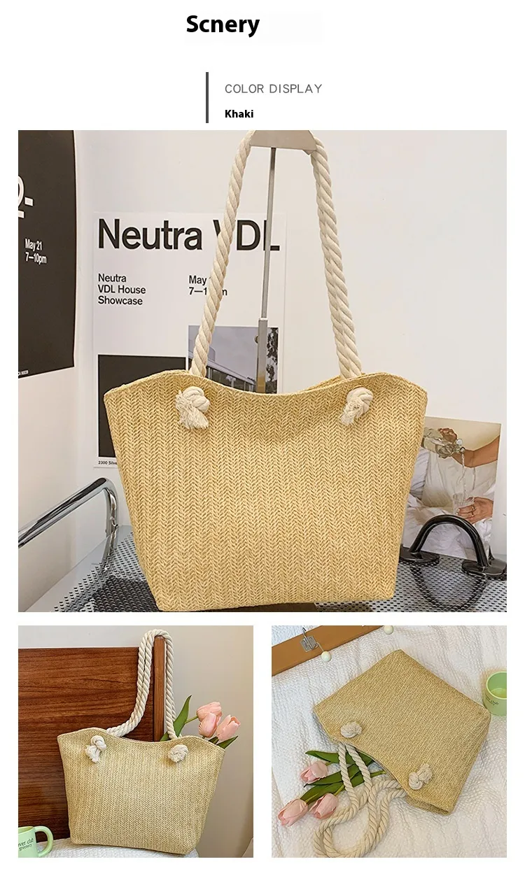 Women's Fashion Straw Large Capacity Shoulder Handbag