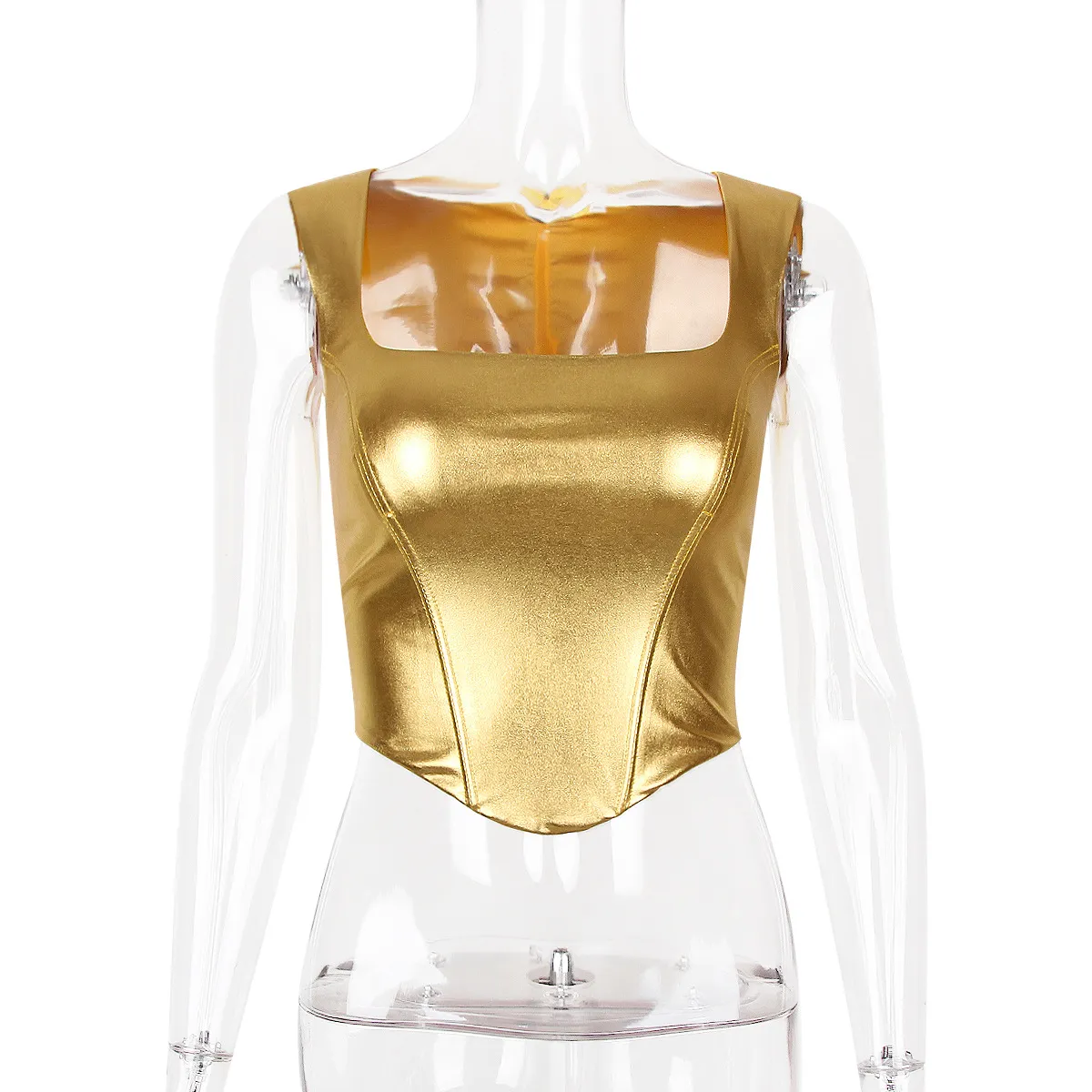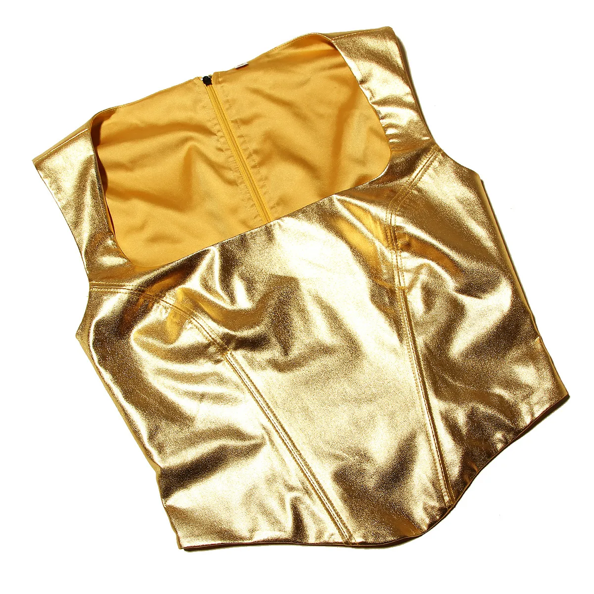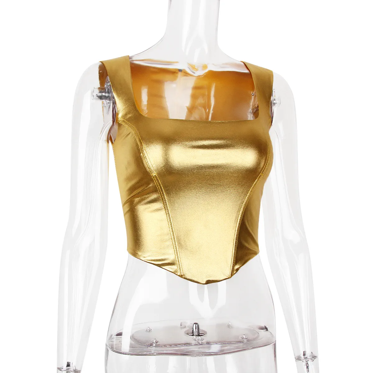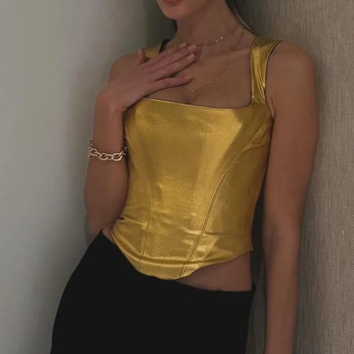 Women's Gold Spaghetti-strap Slim Fishbone Short Top